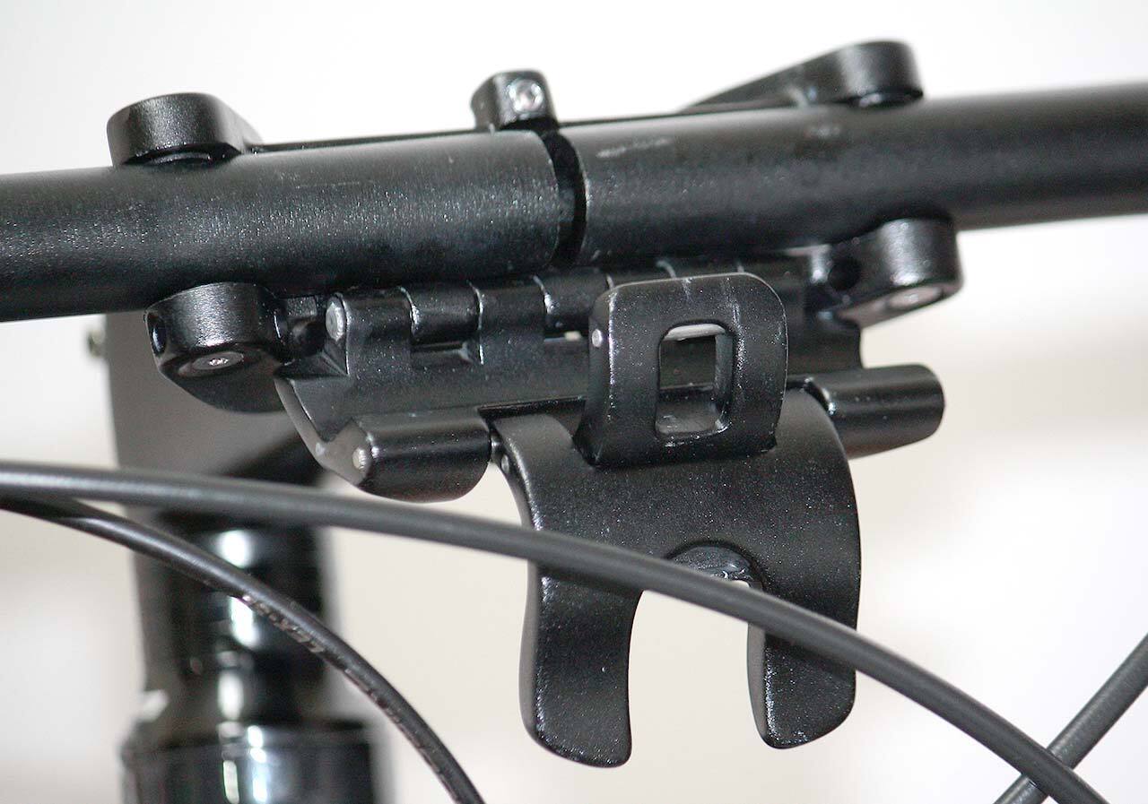 A:クイックリリース引っ掛けるフックにある、調整テンションネジで締め具合を調整できます。
