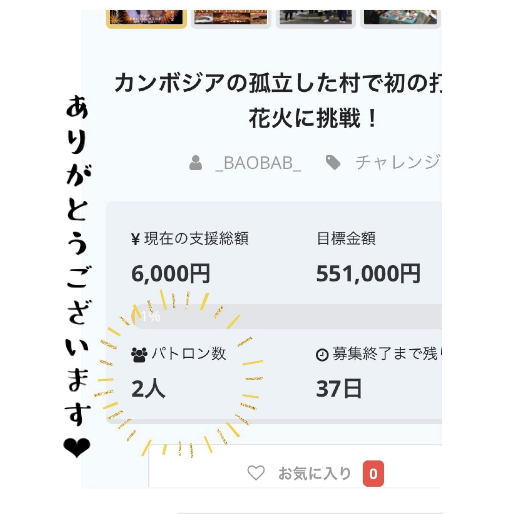 昨日2人目のパトロンの方が協力してくださいました*+•+*+• ウレシイ(涙)!!