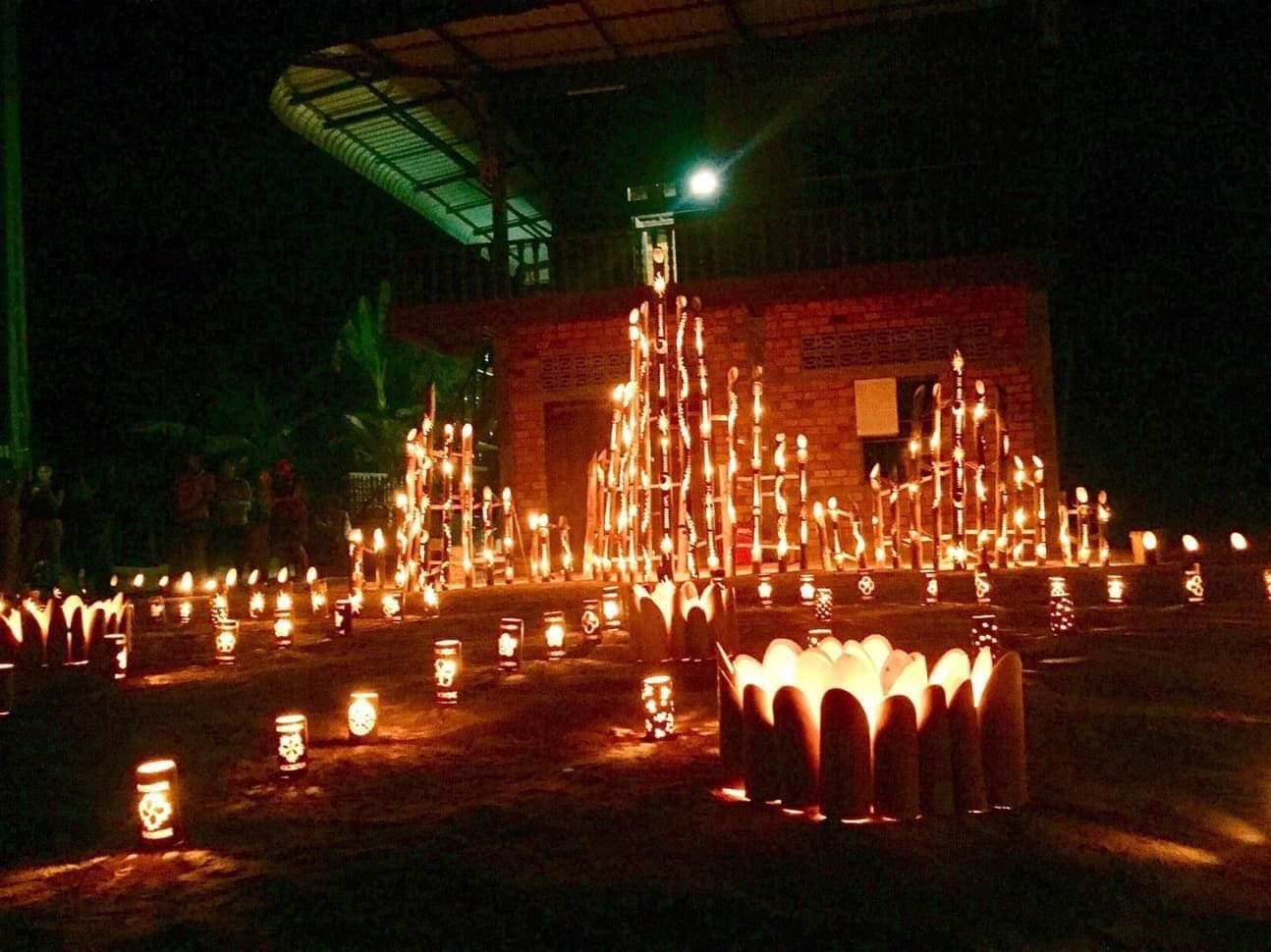 真っ暗の中に光り輝く竹あかり、