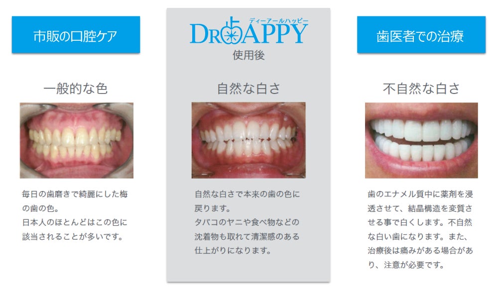 回数を重ねることにより、本来の自然な白さに戻してくれる、それが【DR歯APPY】です。