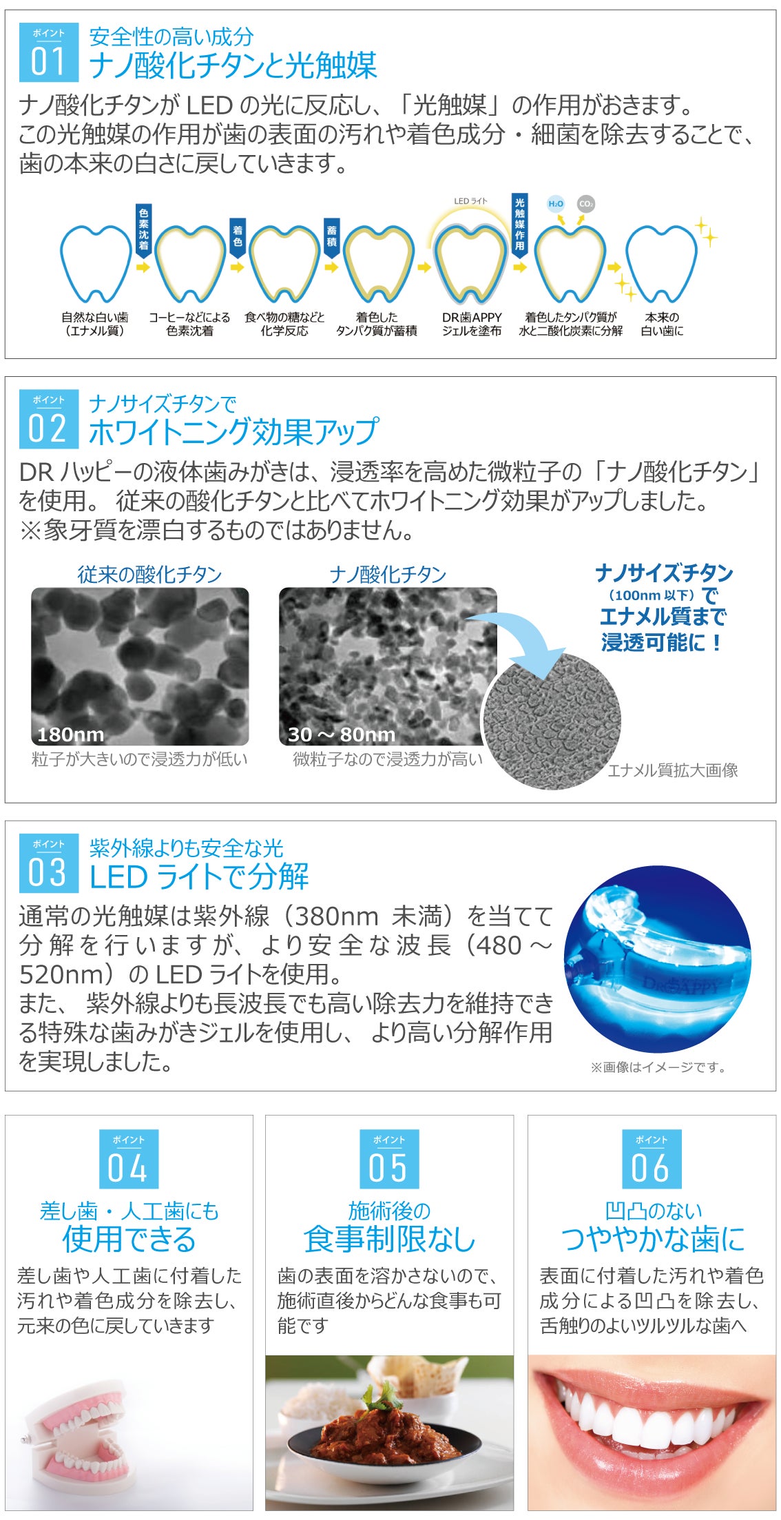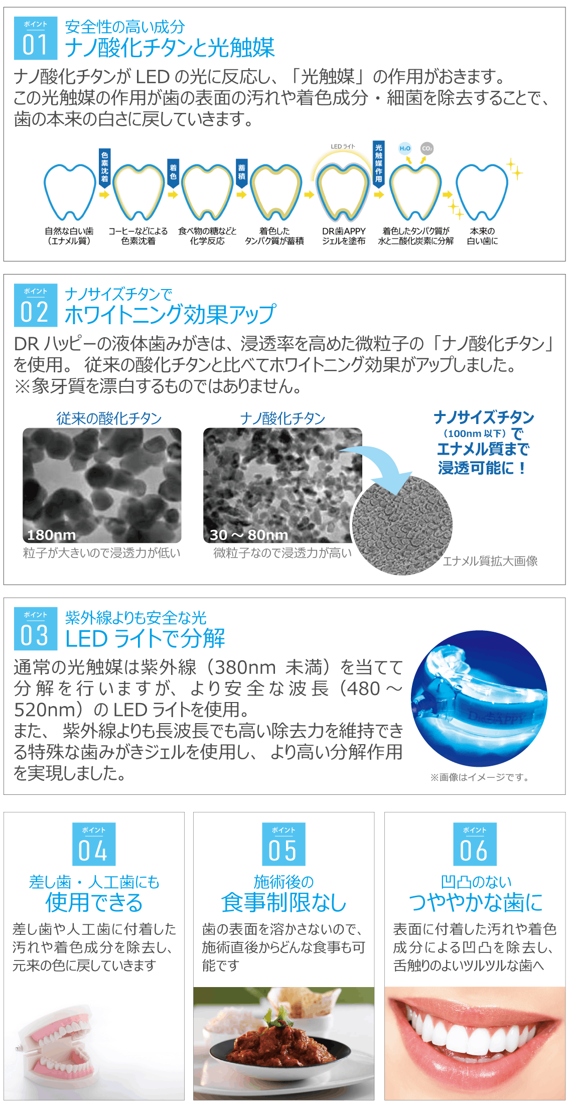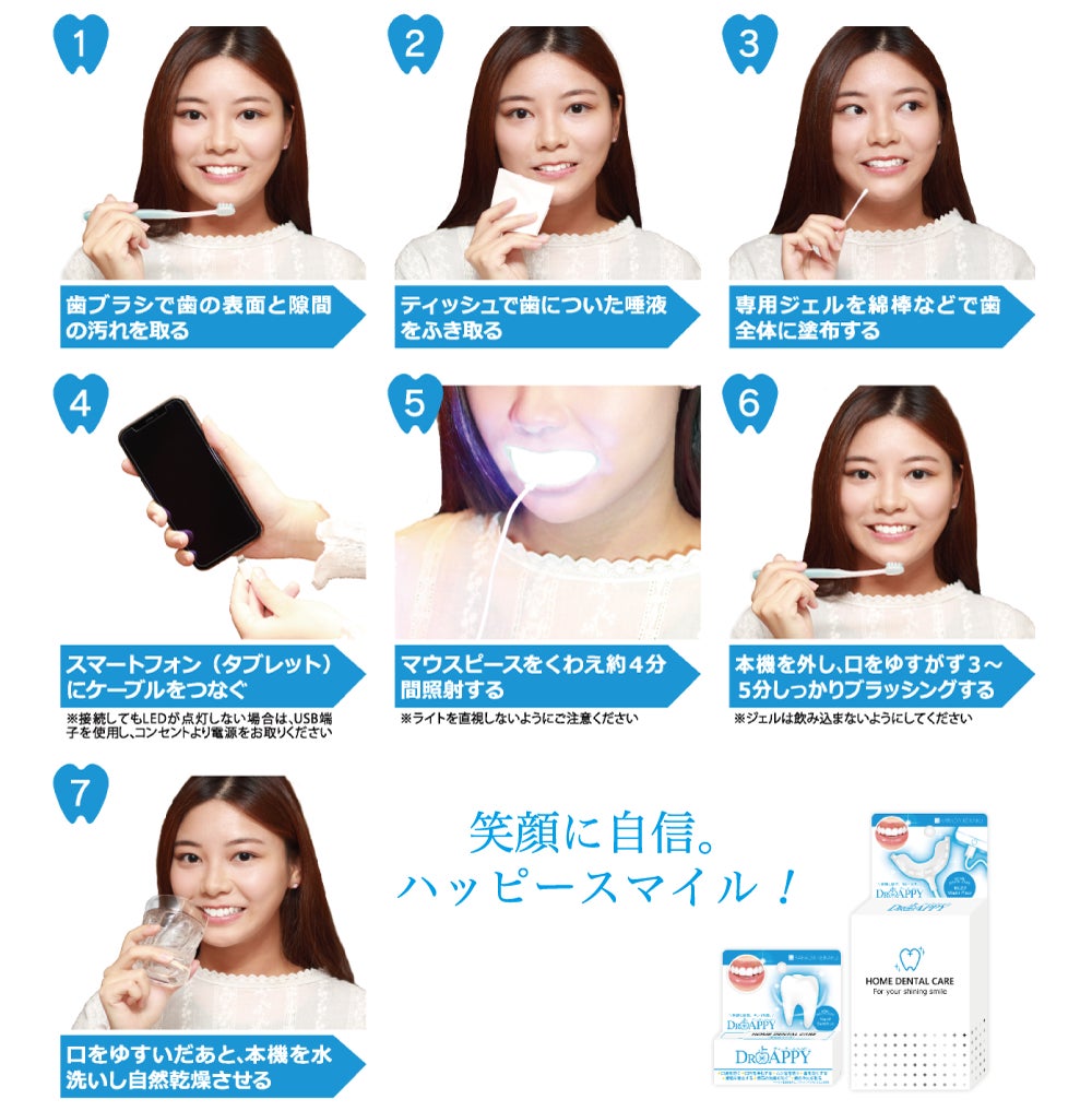 【DR歯APPY】は歯にダメージを与えないので何度でも安心して行えます。