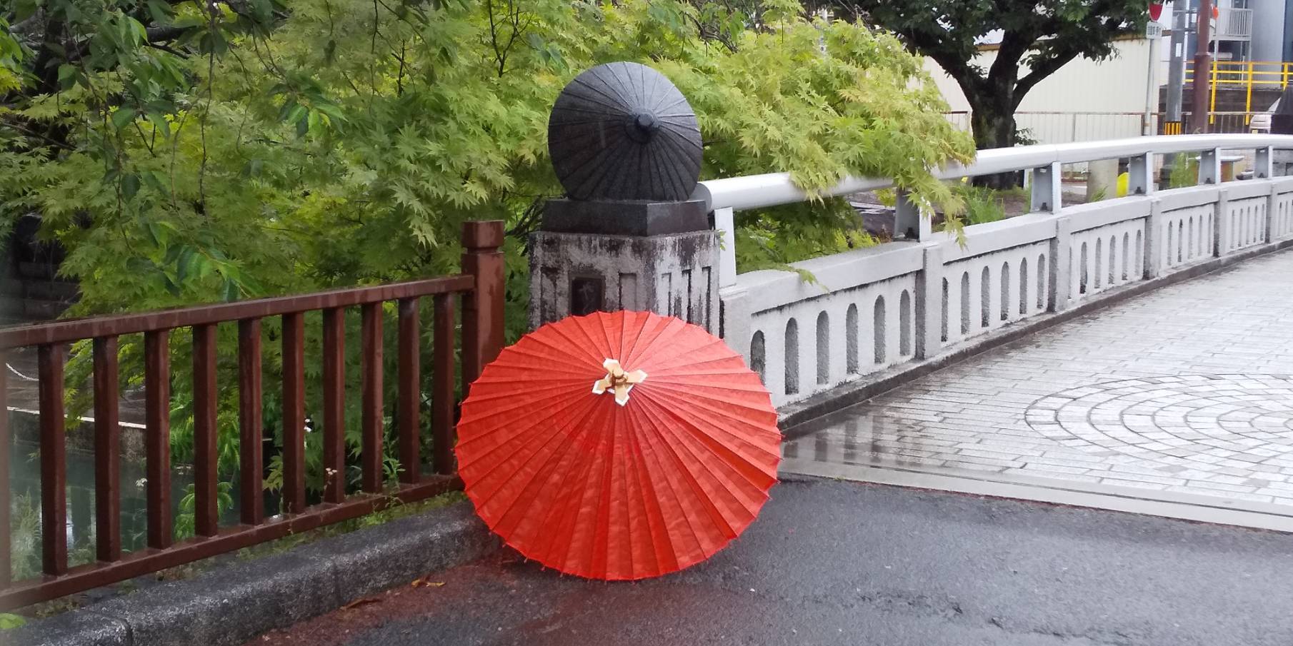 2020/05/17 12:33清水川沿い水薬師寺前の薬師橋で和傘の写真を撮りました。(岐阜マルト藤沢商店提供) もっと見る