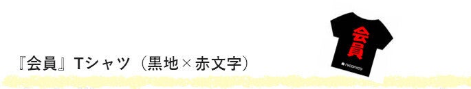 黒Tシャツに赤文字で『会員』と書かれたオリジナルTシャツです。