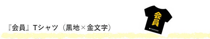 黒Tシャツに金文字で『会員』と書かれたオリジナルTシャツです。