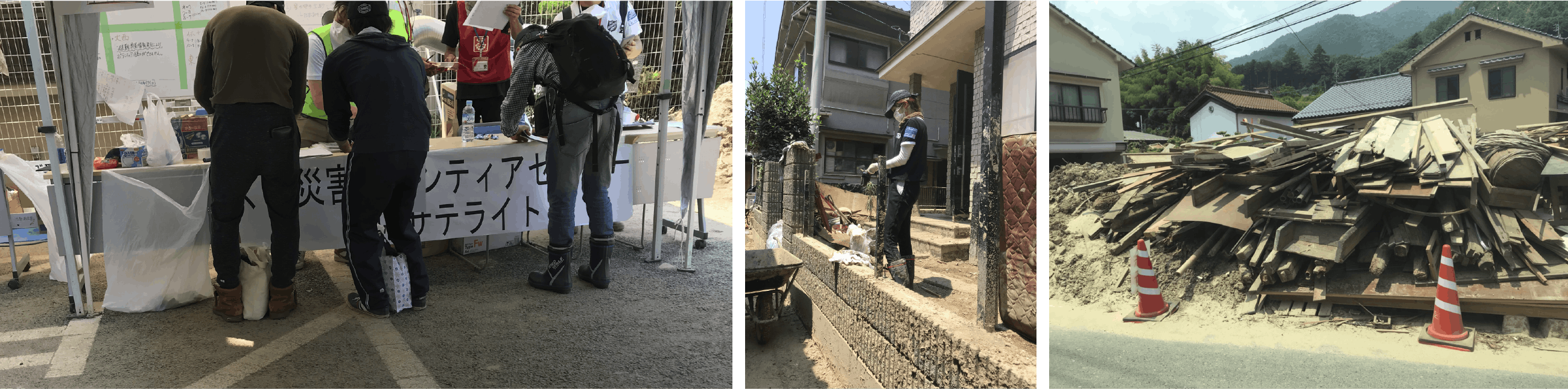 この活動のきっかけは、被災地のボランティアへ行ったときや仲間の話、そして最近のニュースです。