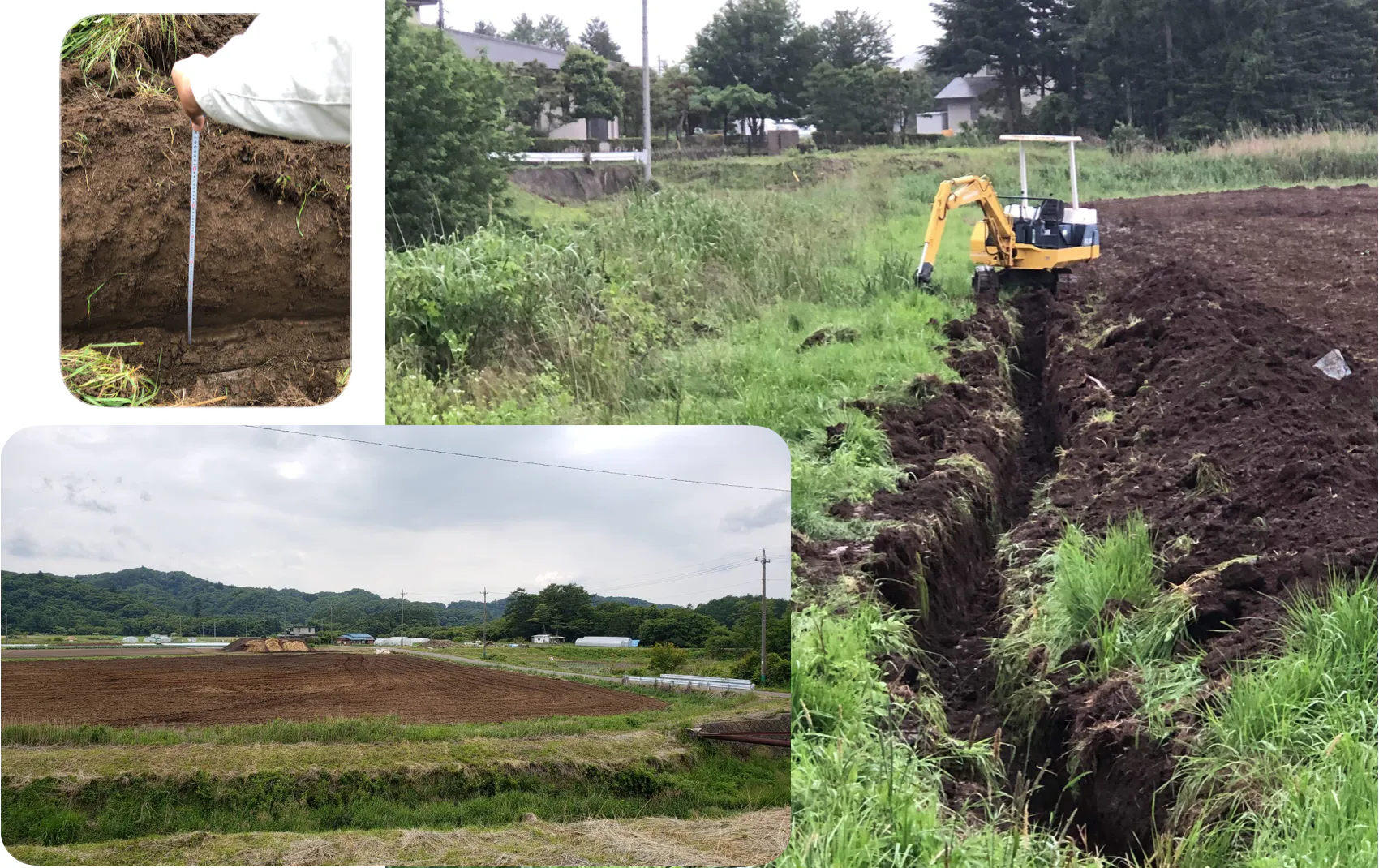 水はけも改良の工夫が必要で、畑の3辺に明渠とよばれる側溝を掘りました。