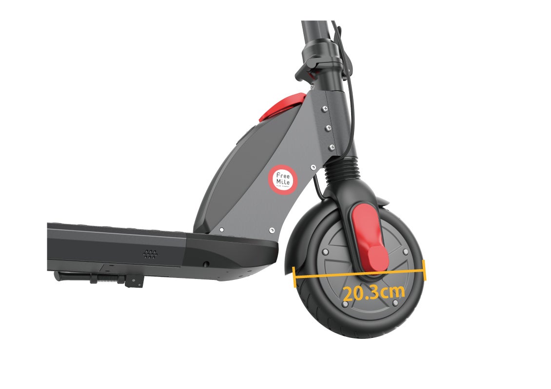 このクラスの電動キックボードでは最大サイズのタイヤを装着しました。