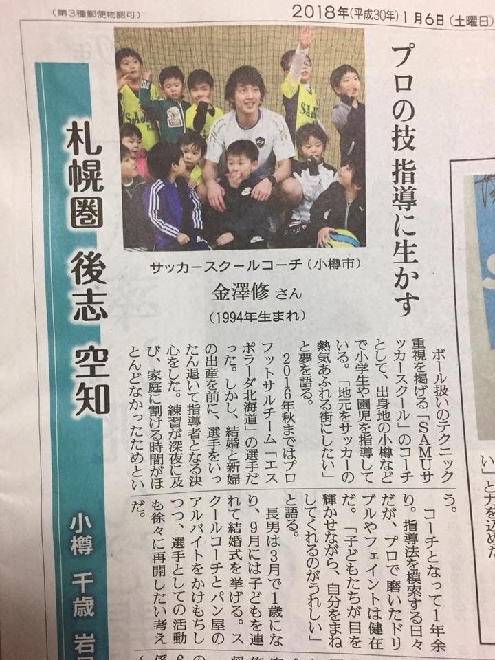 現在は故郷である北海道の小樽市、そして余市郡、倶知安町、泊村の4つの市町村で「SAMU soccer school」を開校し、サッカーの技術を専門としたスクールを幼稚園児から小学生まで、約200名を越える子供達に指導しています。