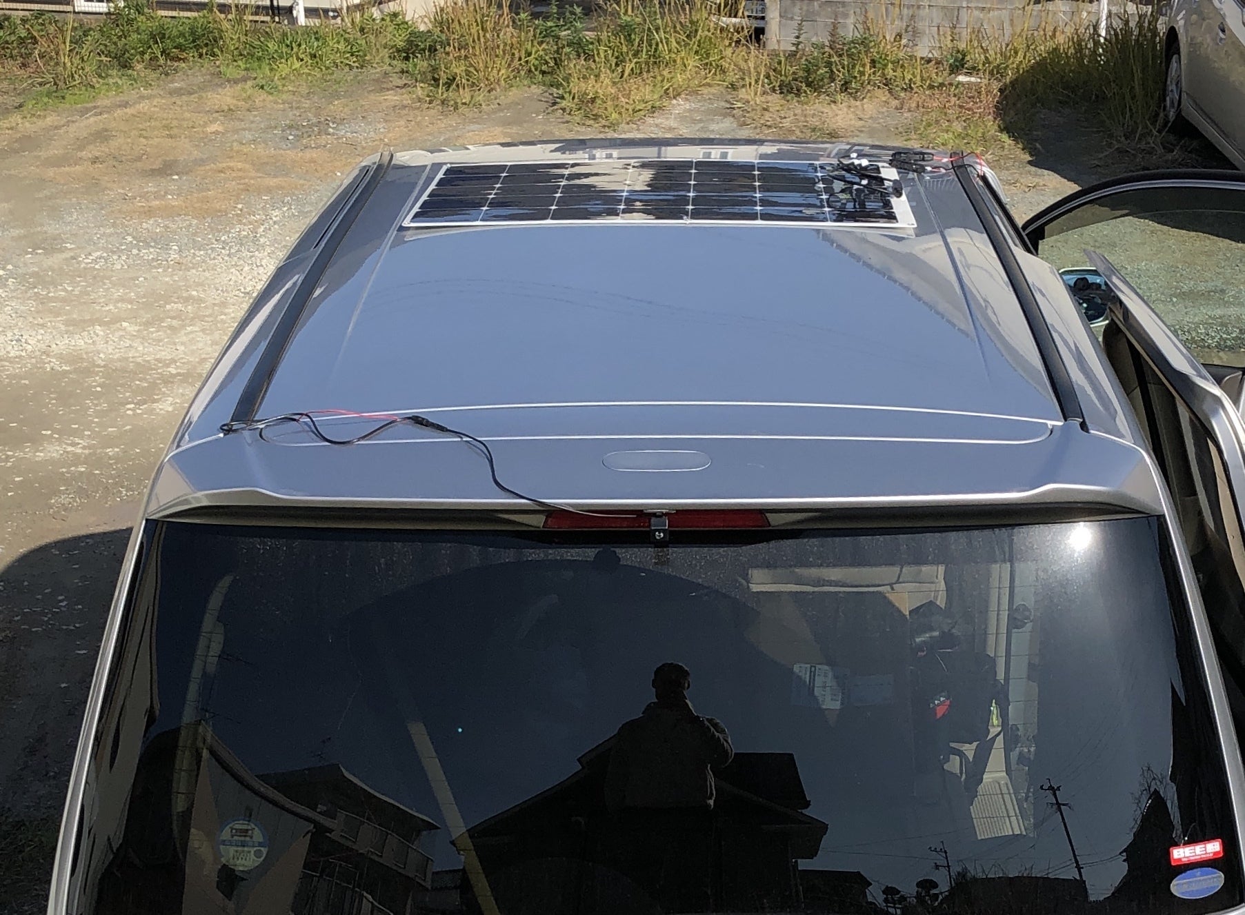 ついに、、ソーラーパネルデビューしてしまいました!!これはまだ、仮留めした状態の、位置合わせ、動作確認の状態ですが、一応こんな感じ!!今回の旅は、ただ、ダラダラ、日本を旅する。のではなく、きちんと写心家、表現者として、旅をし、多くの人へ、共有してゆきたい。という思いがありますので、今回は、カメラの電源を多量に使うと思われます。それにあたり、電力の確保をしなければならないのですが、エンジンの発電のみに頼るのも心配な要素もあるので、太陽様のお力を拝借しようかと、、今回は100w発電可能な安いソーラーパネルを注文いたしました。とりあえず今回は横から配線を這わすような感じにしようかと。。そしてDCコネクタに変換し、ポータブル電源に蓄電。。なんとか動作確認もでき、一安心。。仮留めという事で、吹っ飛ばないように強いテープと麻糸で固定。。飛んで行きませんように。。