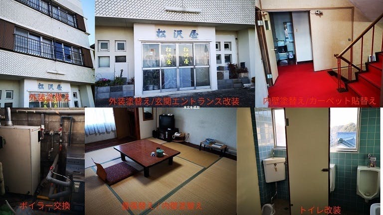 この中で優先的に改善を要することは「お店創り」でございます。現在の旅館の姿に改築してから45年以上が経っております。その間に外装、内装、備品、設備等の投資や改装をいたして参りました。然しながら集客減に伴う売り上げ低下に伴い維持管理が滞り、強いては老朽化が顕著に表れ、お客様にも設備の古さからご迷惑をお掛けする事が多々増えて参りました。この現状から更なる経営状況は悪化し存続が難しい状況となっております。