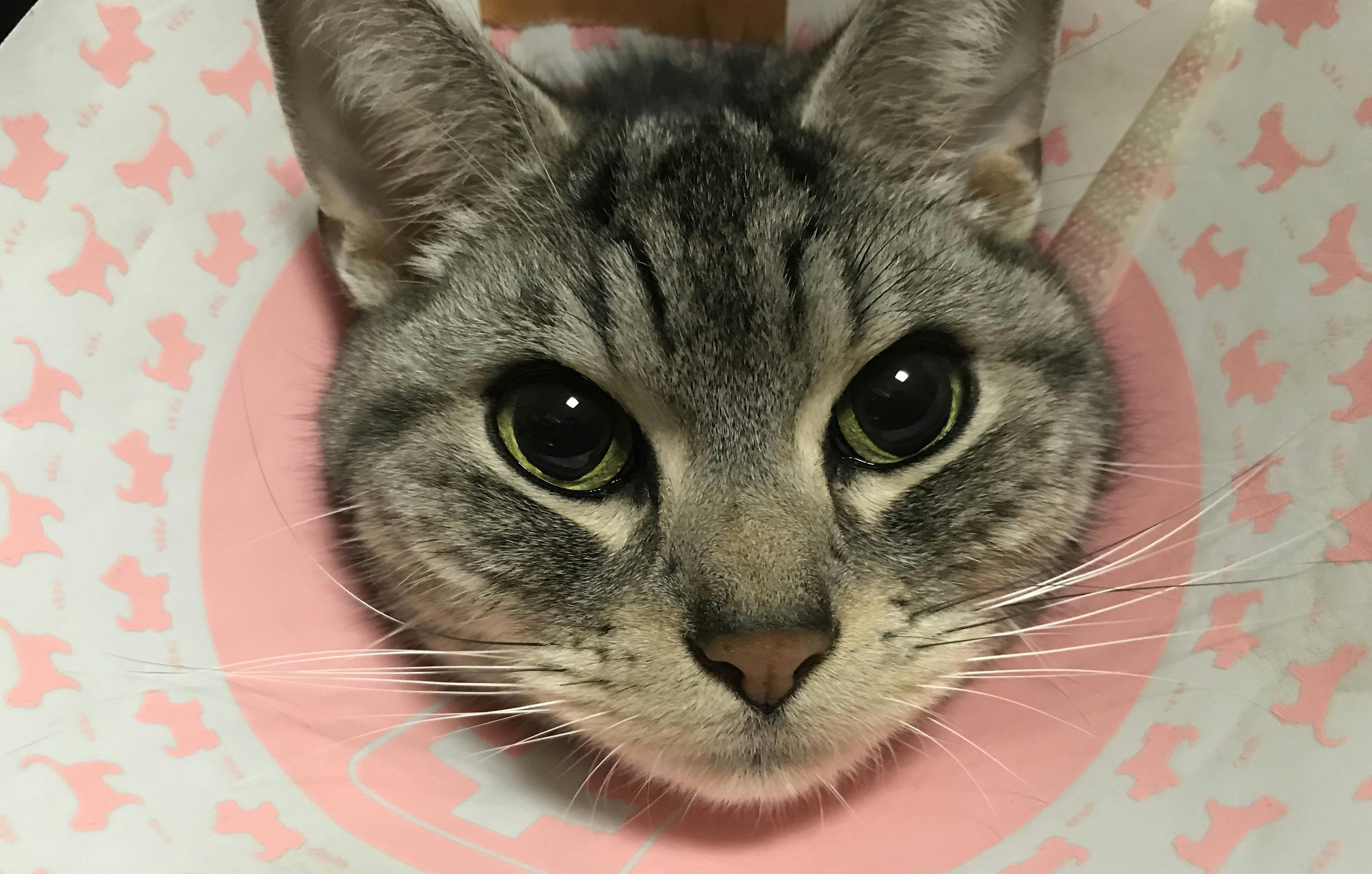 傷口を消毒されるときは先生に怒っていましたがその後に頭をよしよししてもらったらまんざらでもない様子でした。