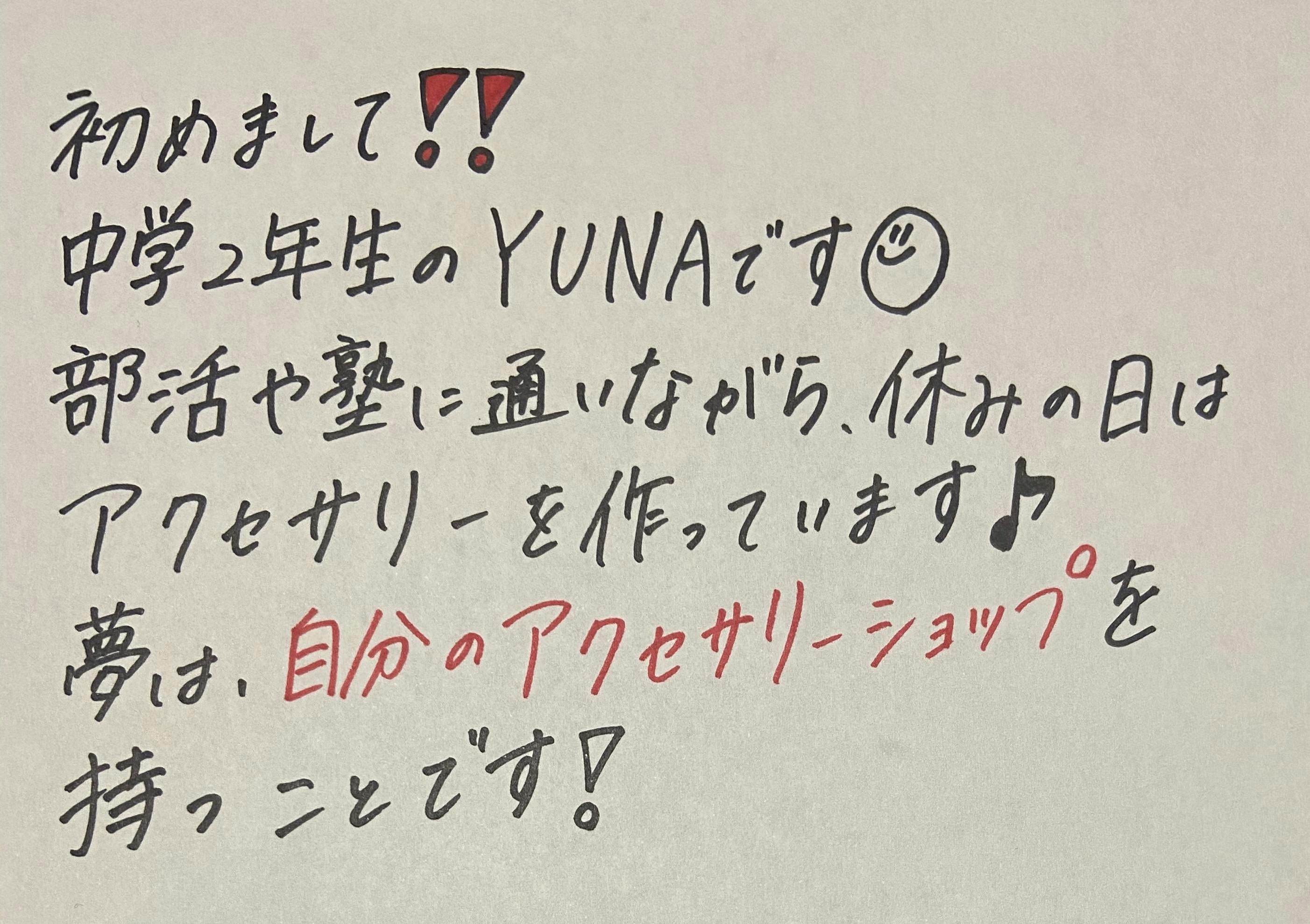 趣味でアクセサリーを作ってお母さんやお姉ちゃん、友達にプレゼントしたりしていましたた!!