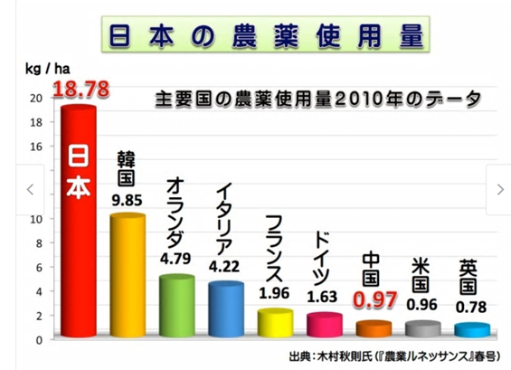 食料自給率の算出が世界で唯一の”カロリーベース”。つまり、葉物はカロリーにほぼ入らない。数字のトリックがあります。生産額でみれば、狭い限られた国土の中にも限らず世界に誇れる生産額です。