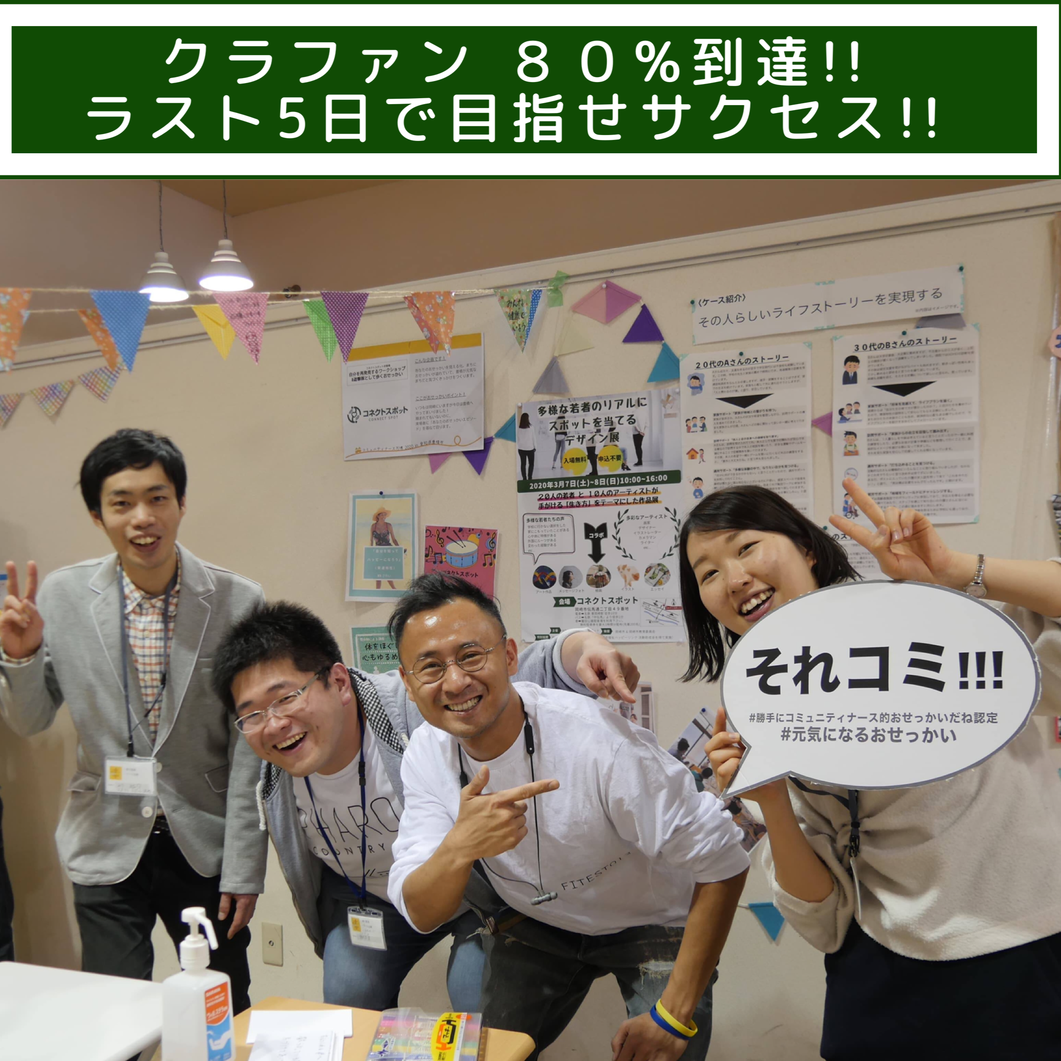ここまで応援して下さりましてありがとうございました!本日、クラウドファンディングの目標金額を達成しました!!プロジェクトは2月28日まで続いていますので、最後まで走り抜けたいと思います。引き続きどうぞよろしくお願いします。コネクトスポット一同