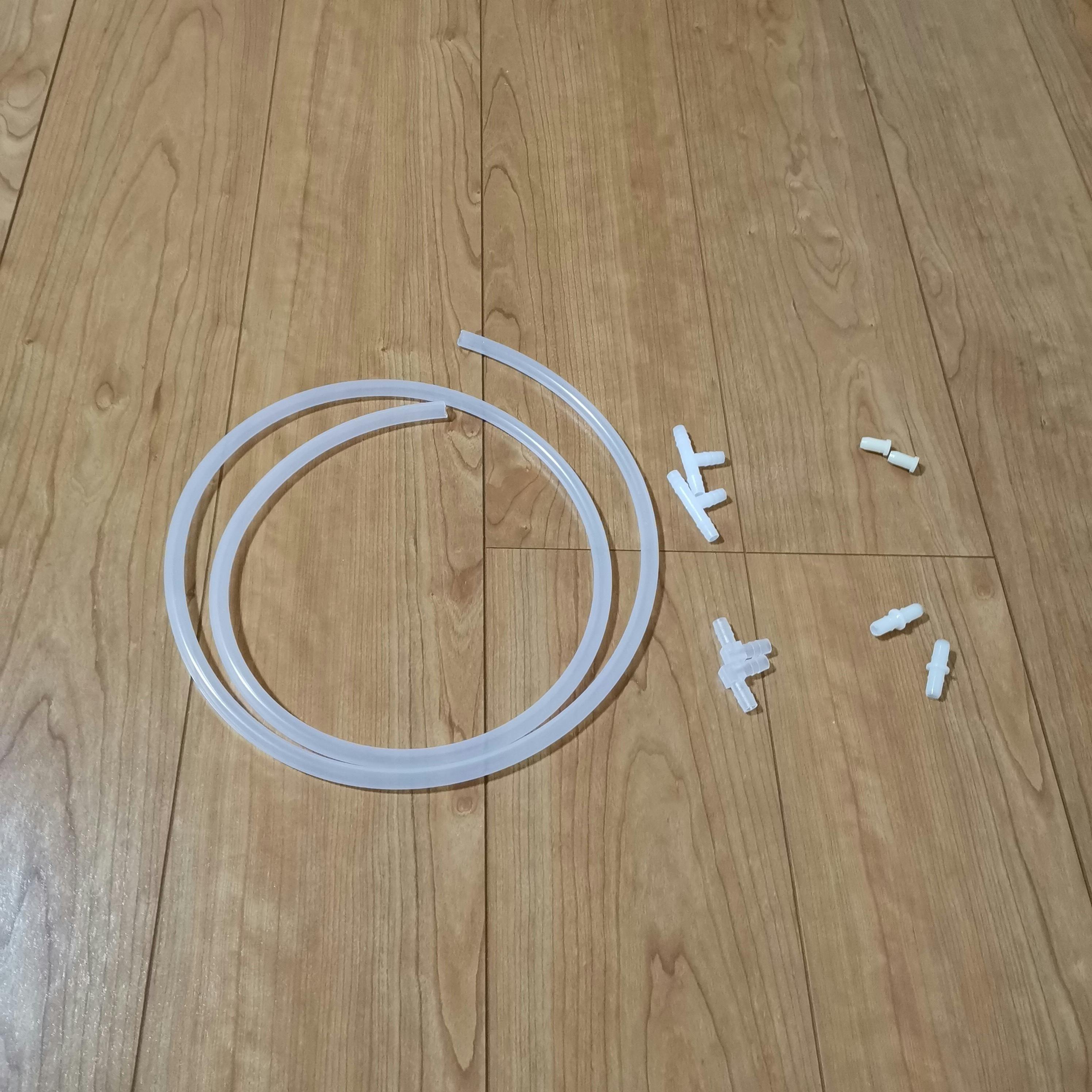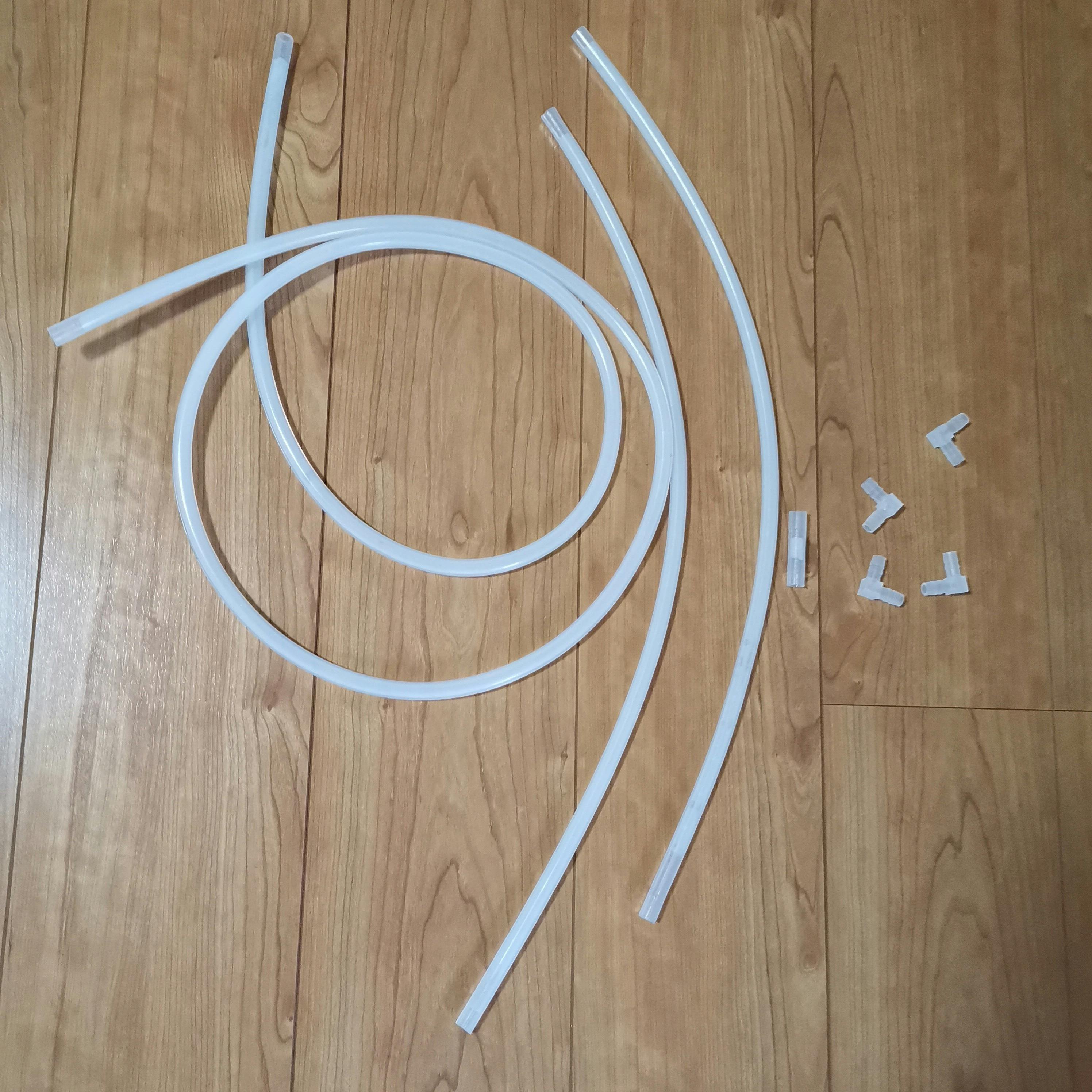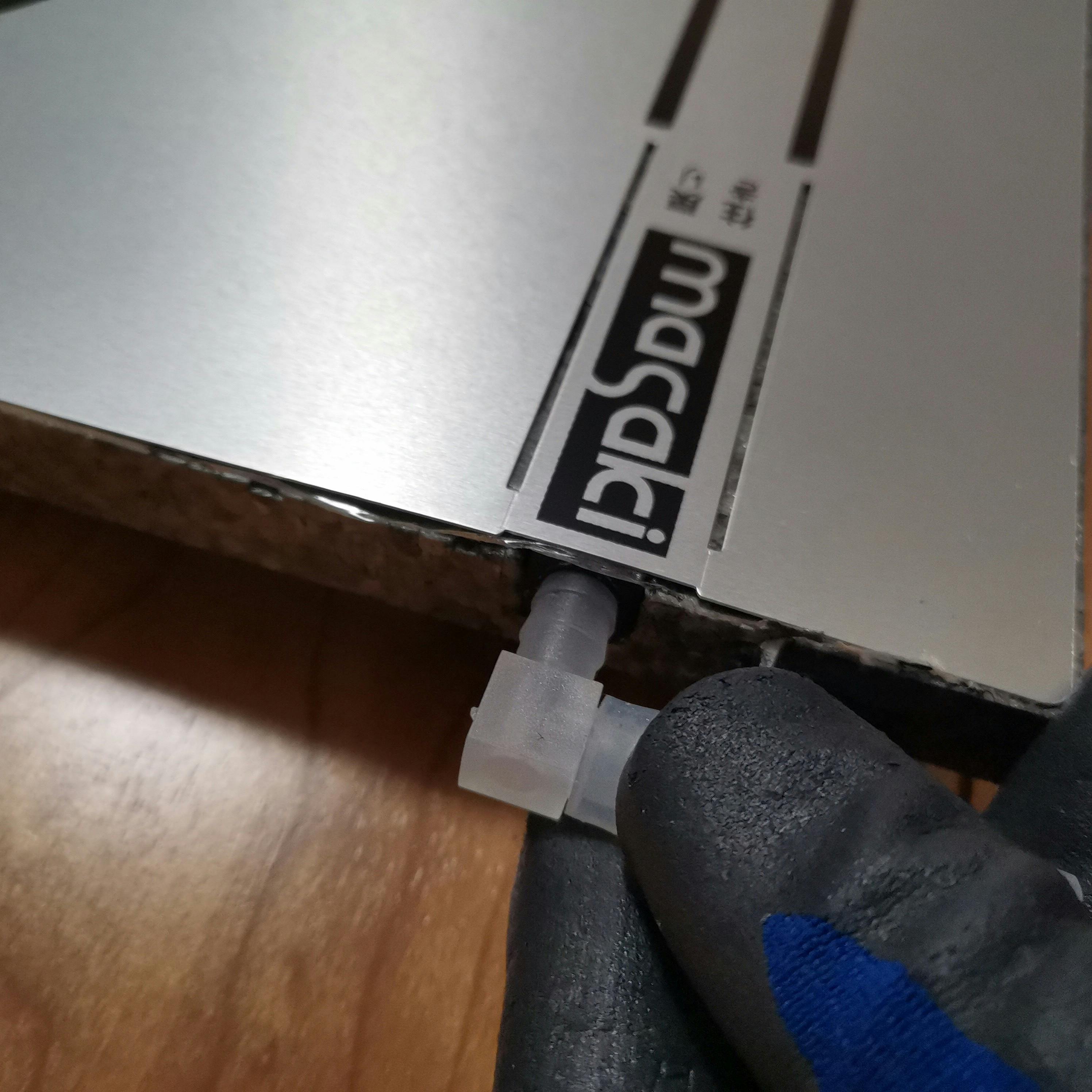 4、必要に応じてシリコンチューブを切り分け、コネクターでつなぎ温水機まで配管していきます。