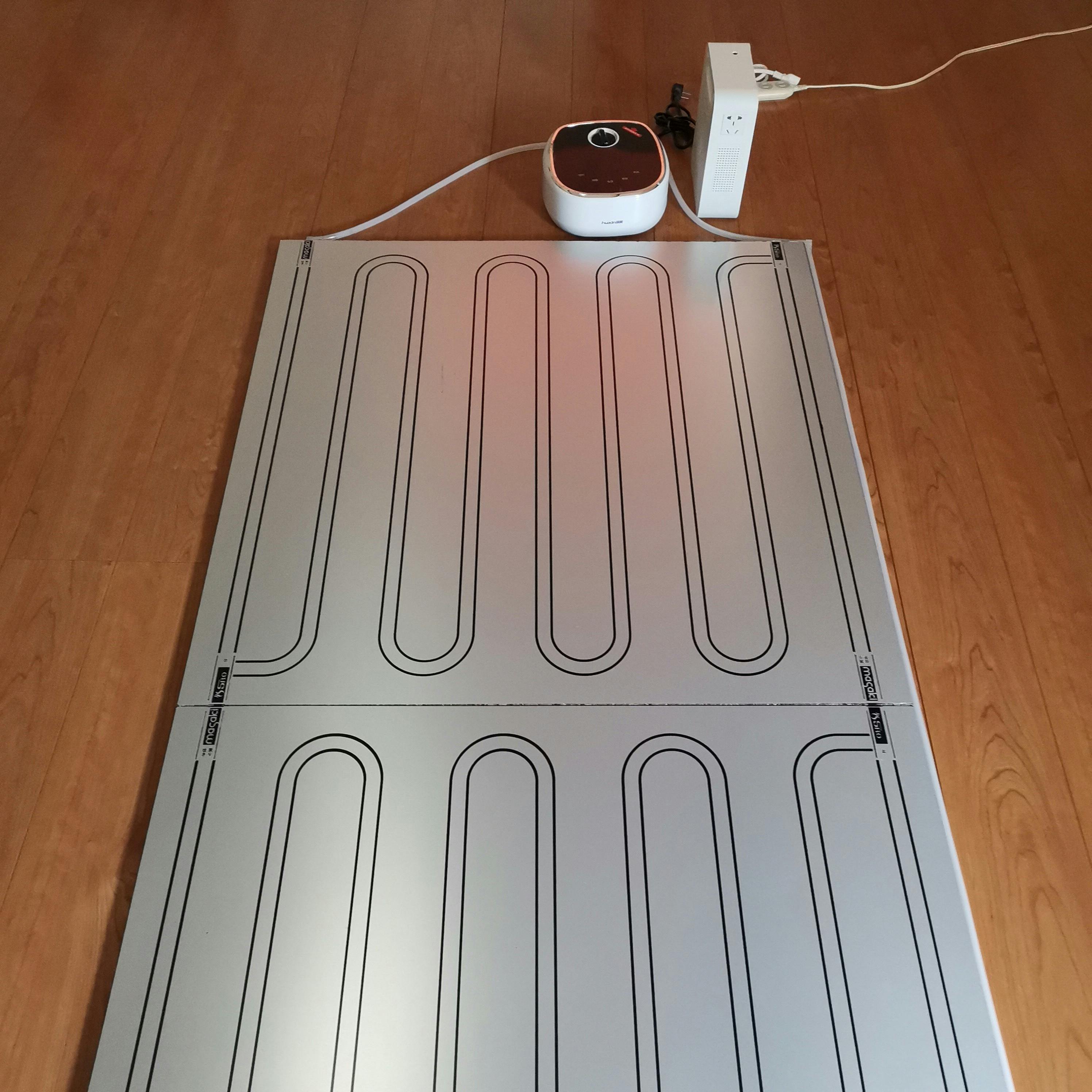 従来の床暖房のような工事は必要無く費用は半分以下かと思います。床暖房を諦めたくない人に特にご提案です。