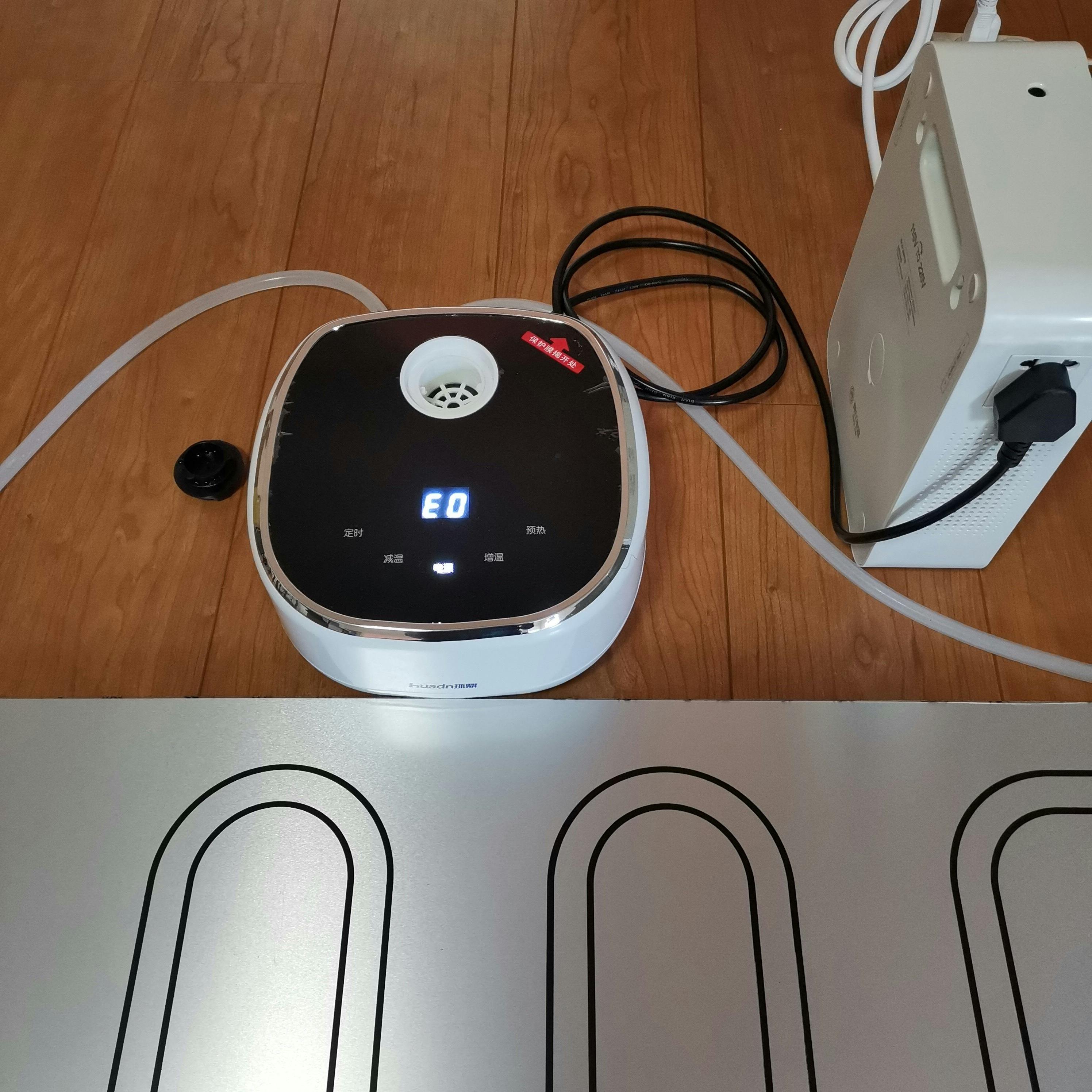 電源を入れるとポンプがまわり水を送ります。温水機内の水量が減ると「EO」と表示され「ピー·ピー」と音がするので水(蒸留水を推奨)を足して下さい。