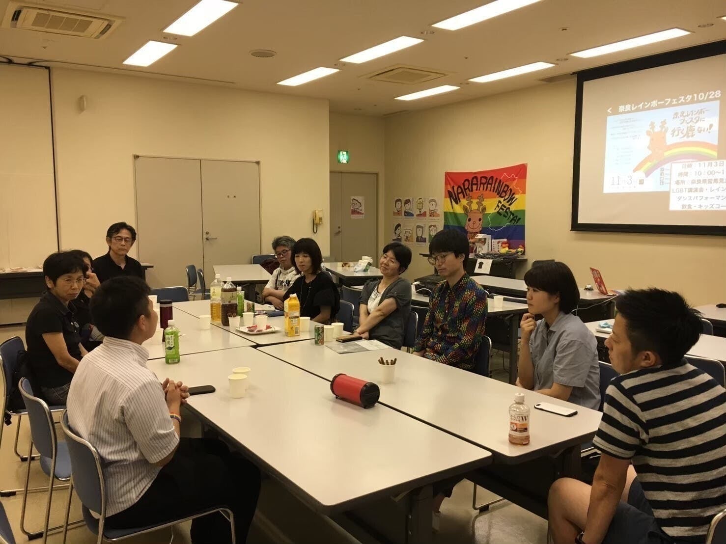 奈良県では毎月 1 回「レインボー奈良カフェ」を開催しており、LGBTの当事者だけでなく、アライ(LGBTを理解し支援する人のこと)となる支援者、学校の先生や医療関係者など、幅広い方々に参加していただいています。