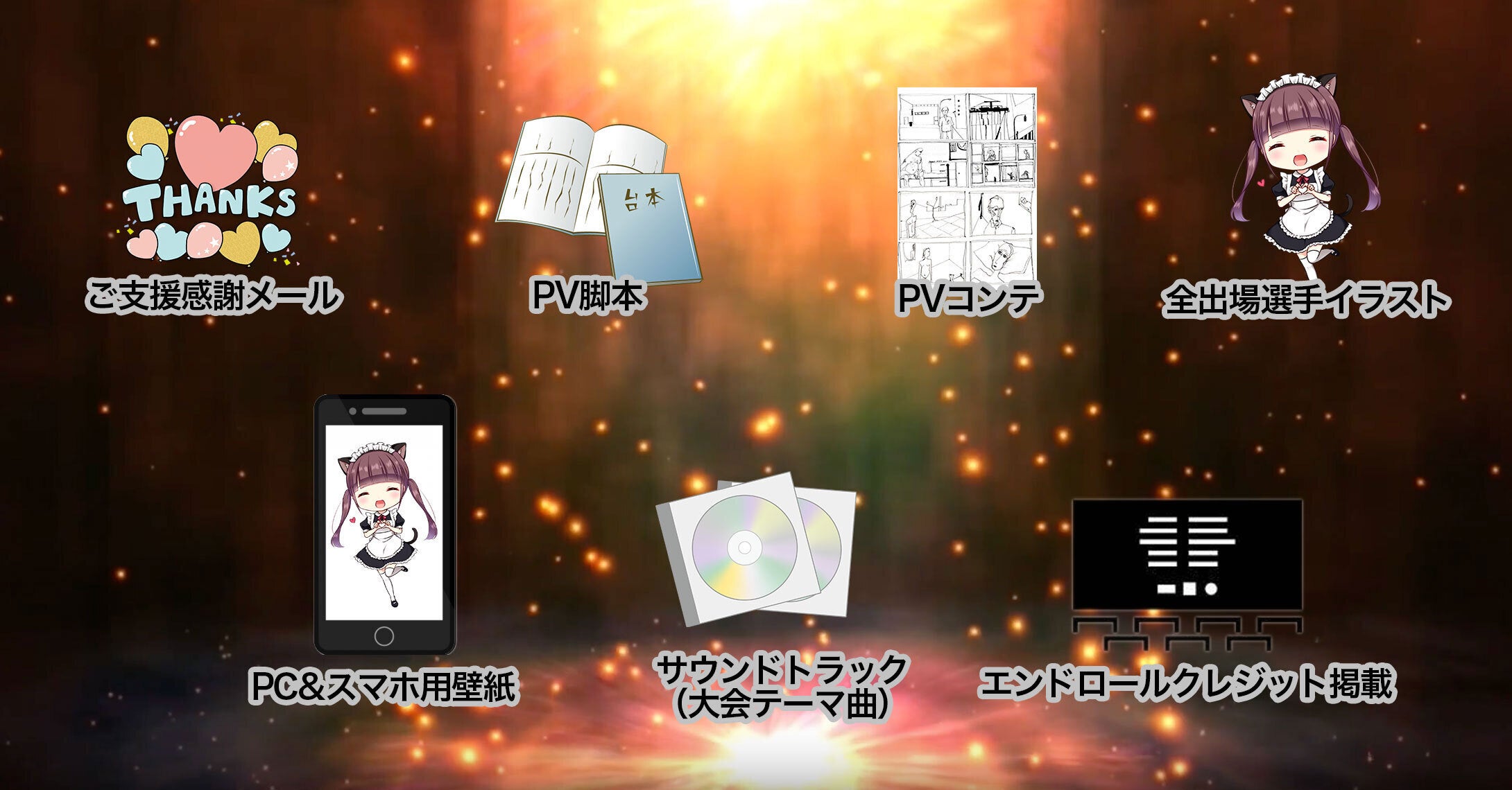 ご支援感謝メール(主催者)/PV脚本/PVコンテ/全出場選手イラスト(サイン入りになるかはまだ未定)