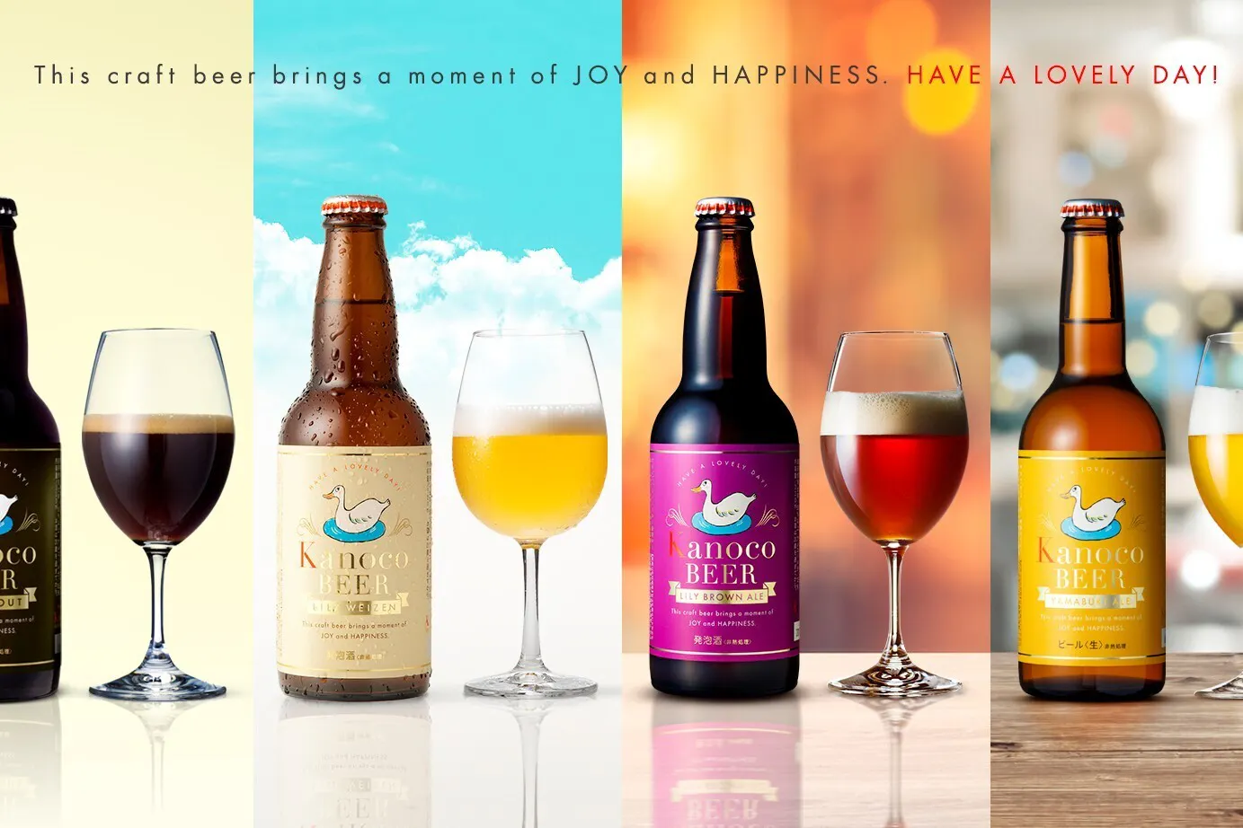 「Kanoco BEER」のコンセプトは、「Have a lovely day ステキな一日を」。このビールを飲むことで、「いつもとちがう特別な日、ステキな一日を過ごしてもらえたら」という願いが込められています。