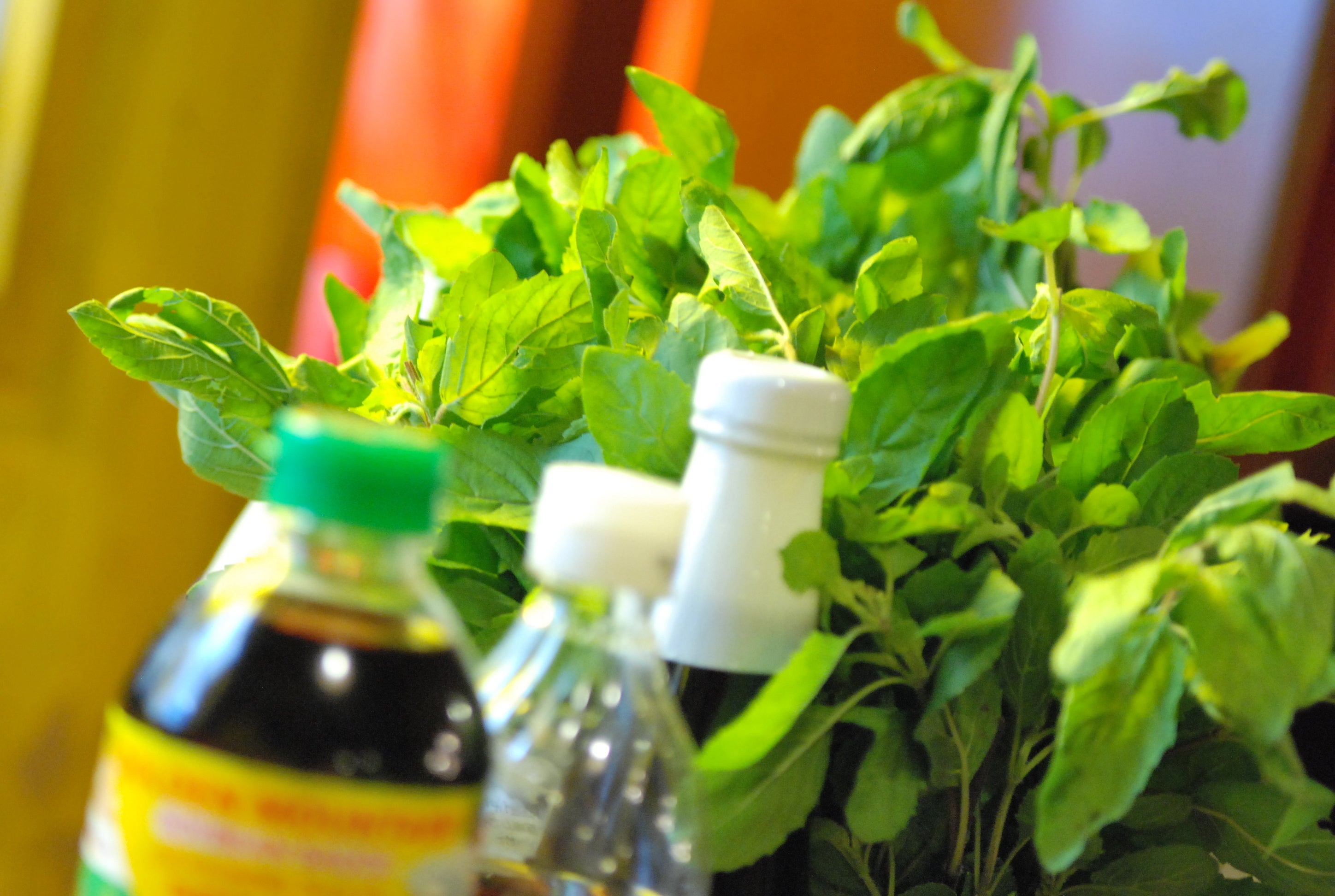 (タイの調味料やハーブ、野菜たち)