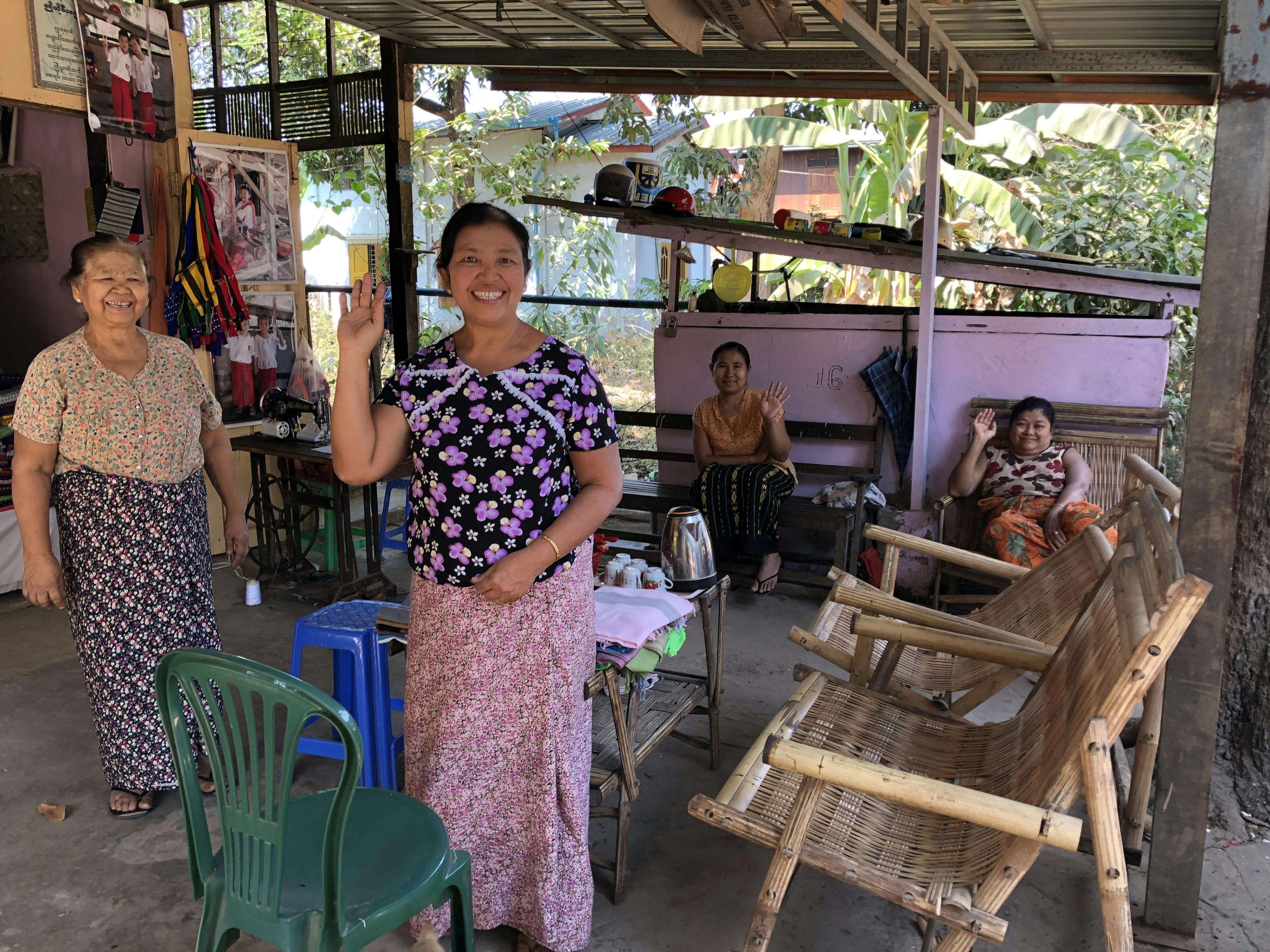 ヤンゴンから鉄道で3時間、ミャンマー の古都パゴーの織物工房を訪ねて、美しい布地の数々を。