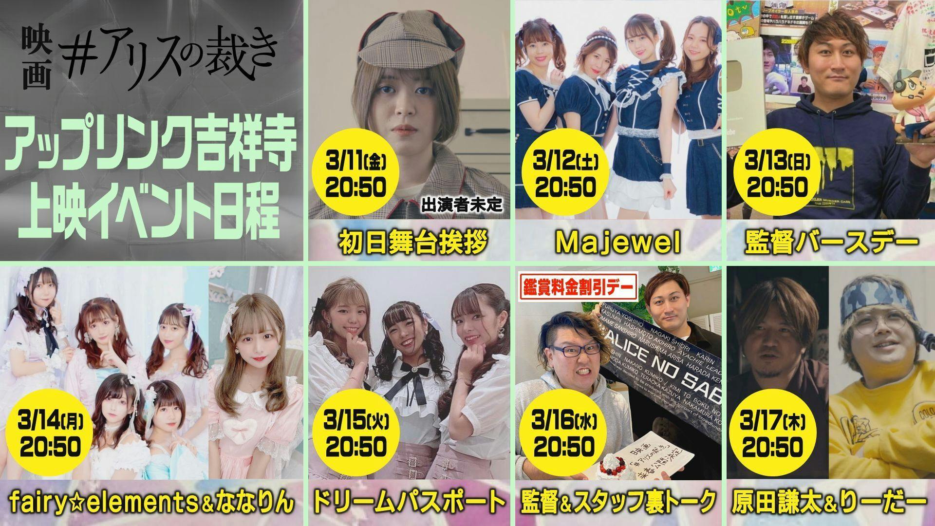 なぜこの上映時間になったかを伺ったところ、使用させていただくスクリーンの中で映画『#アリスの裁き』が一日の最後の上映に配置していただいたそうです。そうすることで上映後のイベントやチェキ撮影などの交流時間が少しでも長くなるようにと配慮していただいたそうです!