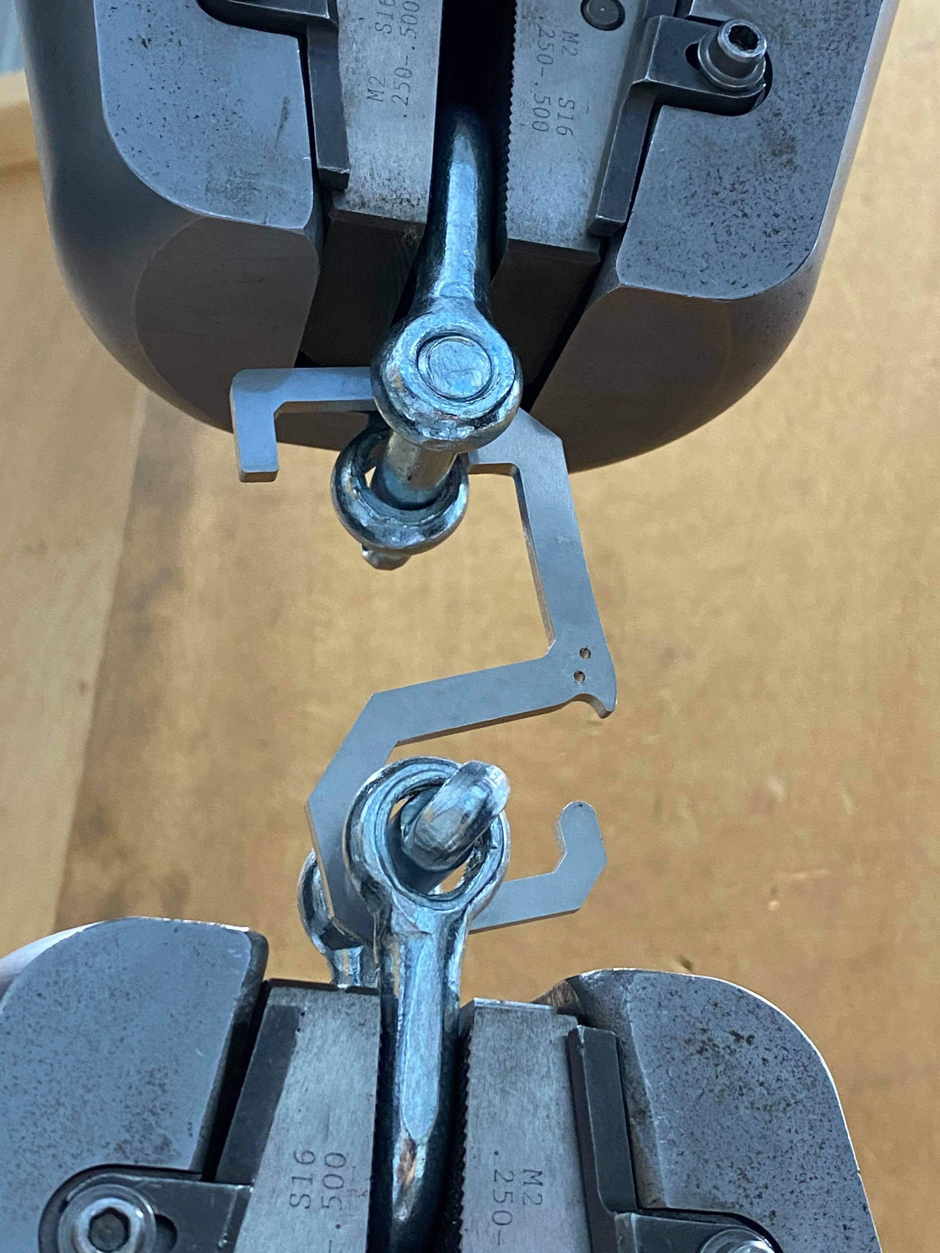 ドアを引く位であれば引っ張り強度は気にしなくて良いですが、吊革の代わりとして使用する場合を想定すると、電車やバスが揺れた時などに掛かる瞬間的な荷重はかなりの物になります。設計当初より重いバッグを吊り下げたり、吊革の代わりに使う事を想定していた為、開発段階で引っ張り強度のテストを行いました。画像は200kgで引っ張っていますが、200kgでも折れ、千切れ、は有りませんでした。耐荷重80kgとしていますが、80kg程度では変形する事はありません。また、先端が鉤爪状になっている事で、しっかり引っ掛ける事が出来るので、不意に外れる心配が無く安心です。動画をご覧になりたい方は下記のリンク先からご覧になれます。https://www.instagram.com/p/CJxXfWEpHWf/?igshid=1sokdyiduhbjl