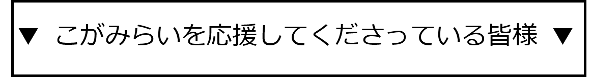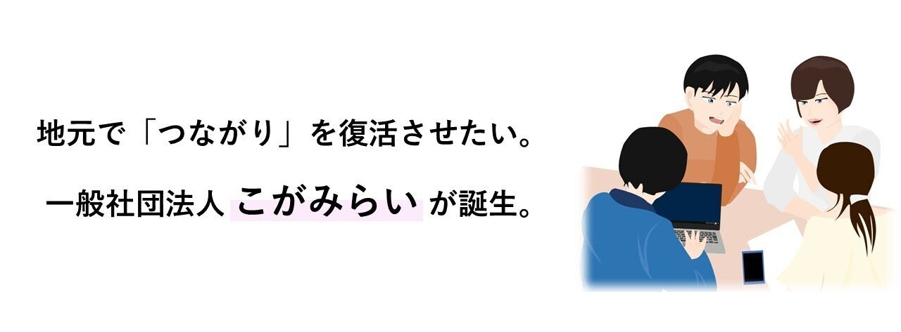 こんにちは。僕らは、こがみらいの「学生プロジェクト」です。それぞれの長所を生かし、動画制作や商品開発など、こがみらいや多くの支援をしてくださる皆様とともに様々な経験を積んできました。このような僕らがしてきた経験や培ってきた関係を多くの方に経験してもらいたい。そんな想いでこのプロジェクトに参画してきました。