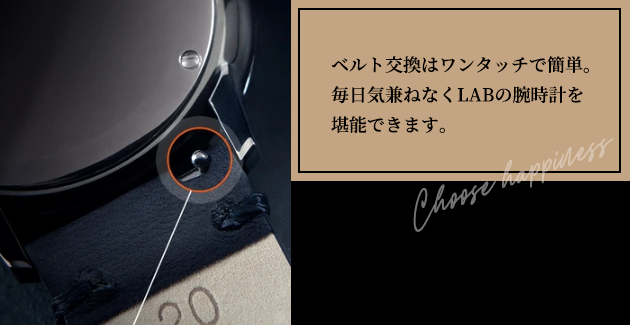 LABの腕時計も同じように、もっとも重要となるデザイン要素のみを使い、シンプルなアプローチをすることで、北欧デザインの特長でもある、落ち着いていて、洗練された個性を表現しています。