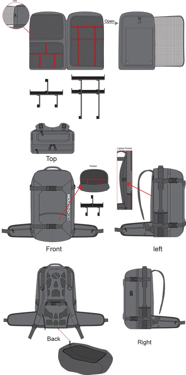 登山やトレッキングなどアウトドアを楽しむ際に、バランス感よく安定的な歩行が出来るようショルダーベルトやウェストベルトの一つ一つにもこだわっています。また、USBポートやキャリーケースを固定できるバンドなどその機能はとても充実しており、あなたの旅を快適なものにしてくれます。