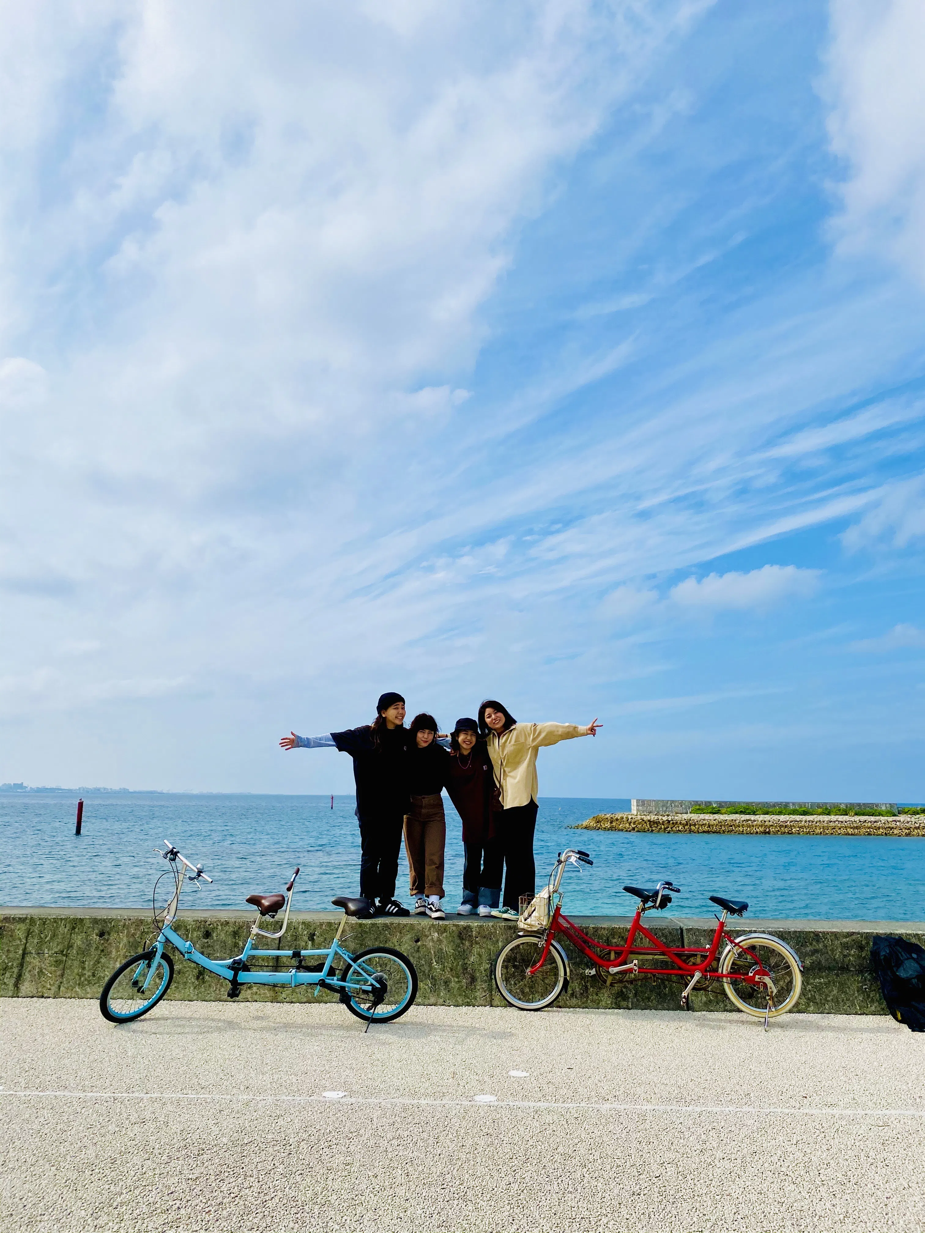 2人乗り自転車は、カップルや親子連れ、豆自転車は友達同士で、などシーンに合わせて使用してもらい、また併設しているカフェで美味しい料理やコーヒーをいただいた後にレンタサイクルで綺麗な海を見ながら街を散策したりちょっと遠出してみたり、または純粋な移動手段として、子供の自転車練習に(キッズバイクレンタル)、普段乗れないような自転車(タンデムバイク、トールバイク)を借りて思い出づくりに、観光の方、地元の方いろいろな方に使っていただきました。カフェと自転車の融合の形で、目の前が海の観光地でこの規模感で行っているのは、日本でもここだけだと感じています。
