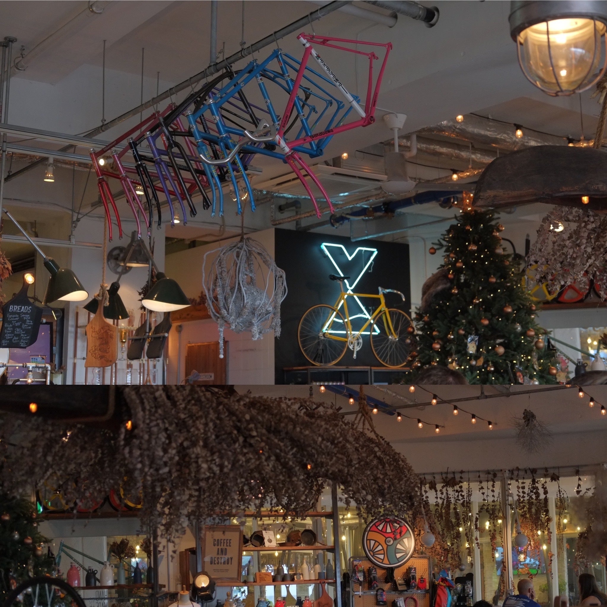 カフェ店内には自転車をインテリア兼販売用としてディスプレイ