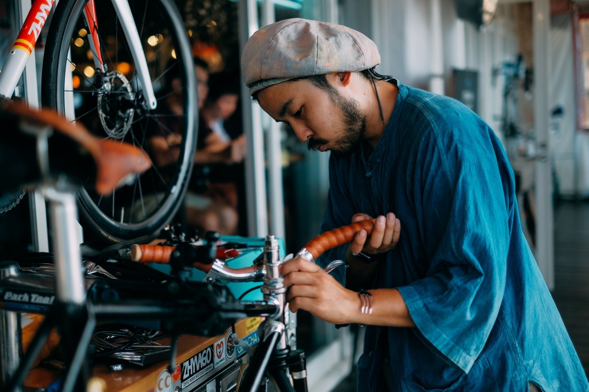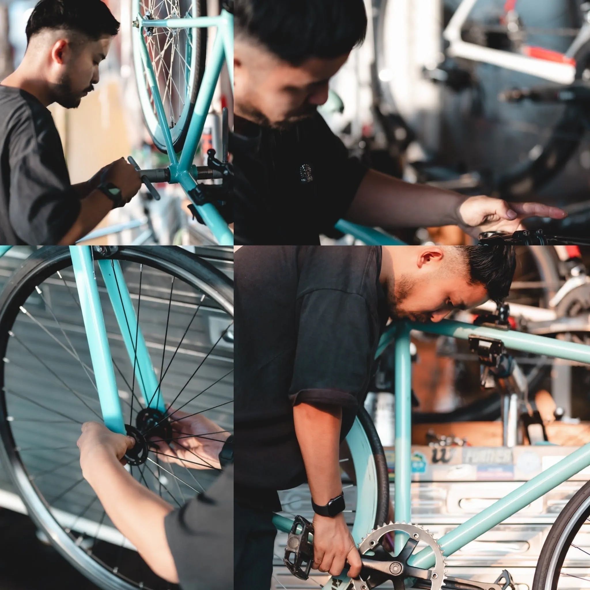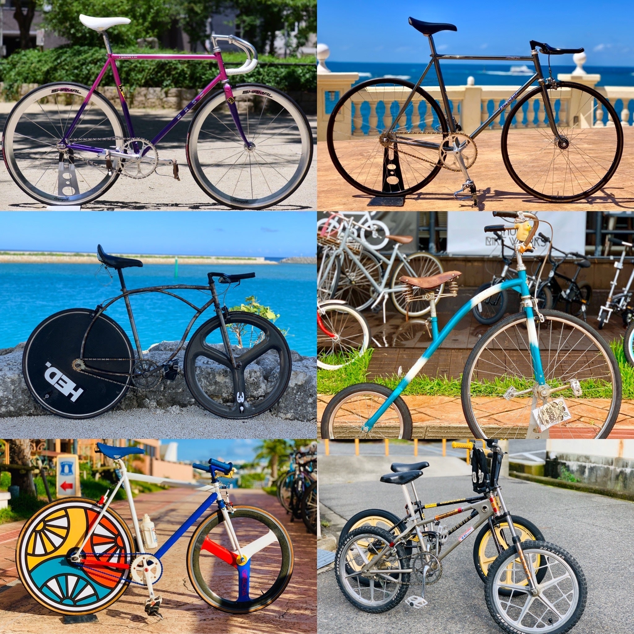 僕は大阪時代、お客様とカウンセリングの上、フレーム、ホイール、パーツを一から選び世界に一台だけのオリジナル自転車を作る仕事をしてきました。自転車という単語からは想像しにくいかもしれませんが、車、バイクと同じく自転車は様々なパーツで構成され、その組み合わせ方は無限大で自転車のタイプ(ロードバイク、シングルスピードバイク、マウンテンバイク、BMX、シティバイク等)によってカスタムを楽しめます。そして、誰とも被らないオリジナルの一台を制作する事は天職というくらい楽しんで行ってきました。そして、令和元年沖縄に移住し、カスタムバイク兼レンタサイクルのお店『Shuhari bike works』を営んでいます。