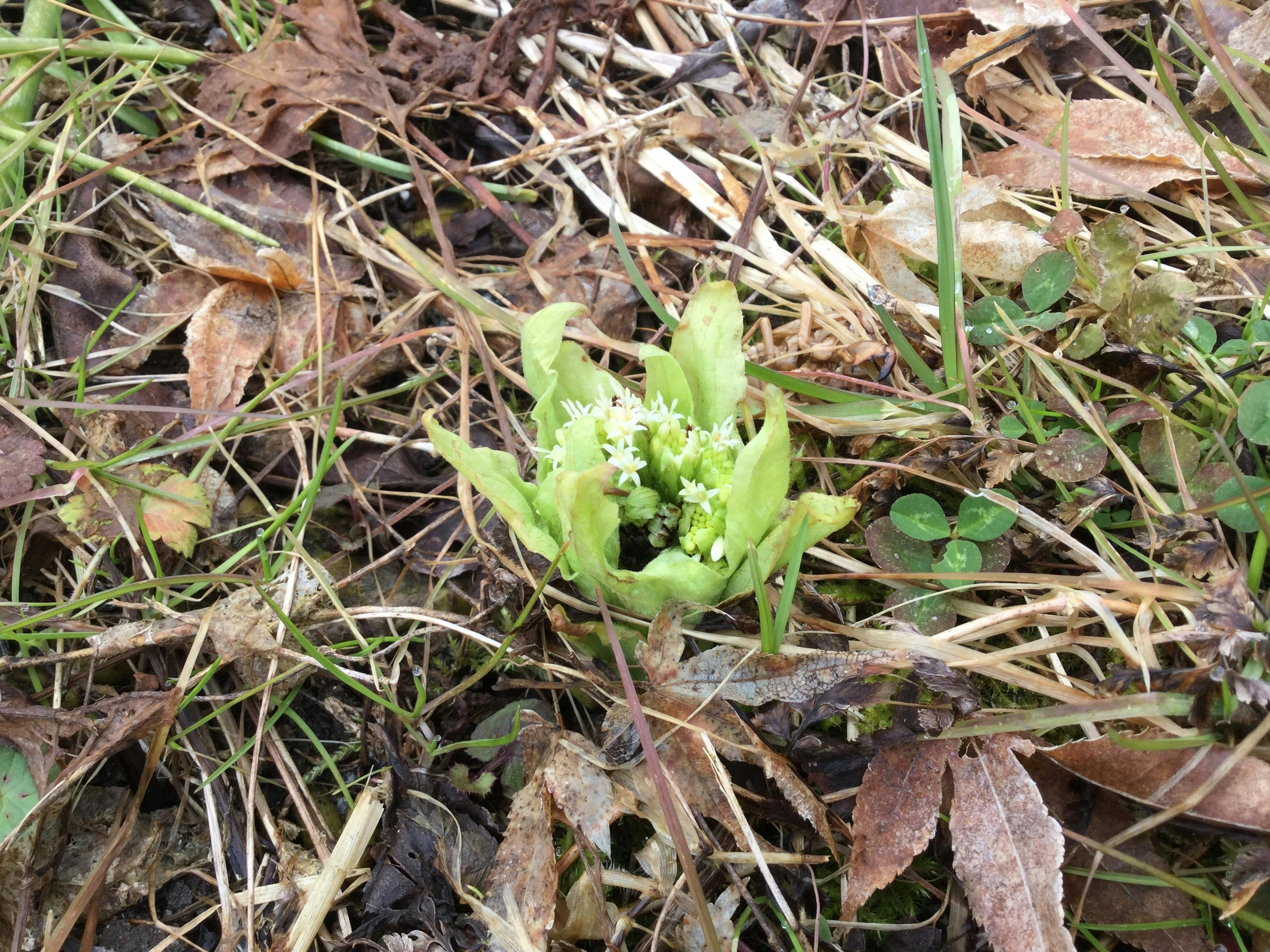 写真は家の前でふきのとうを摘んでいたら見つけた、