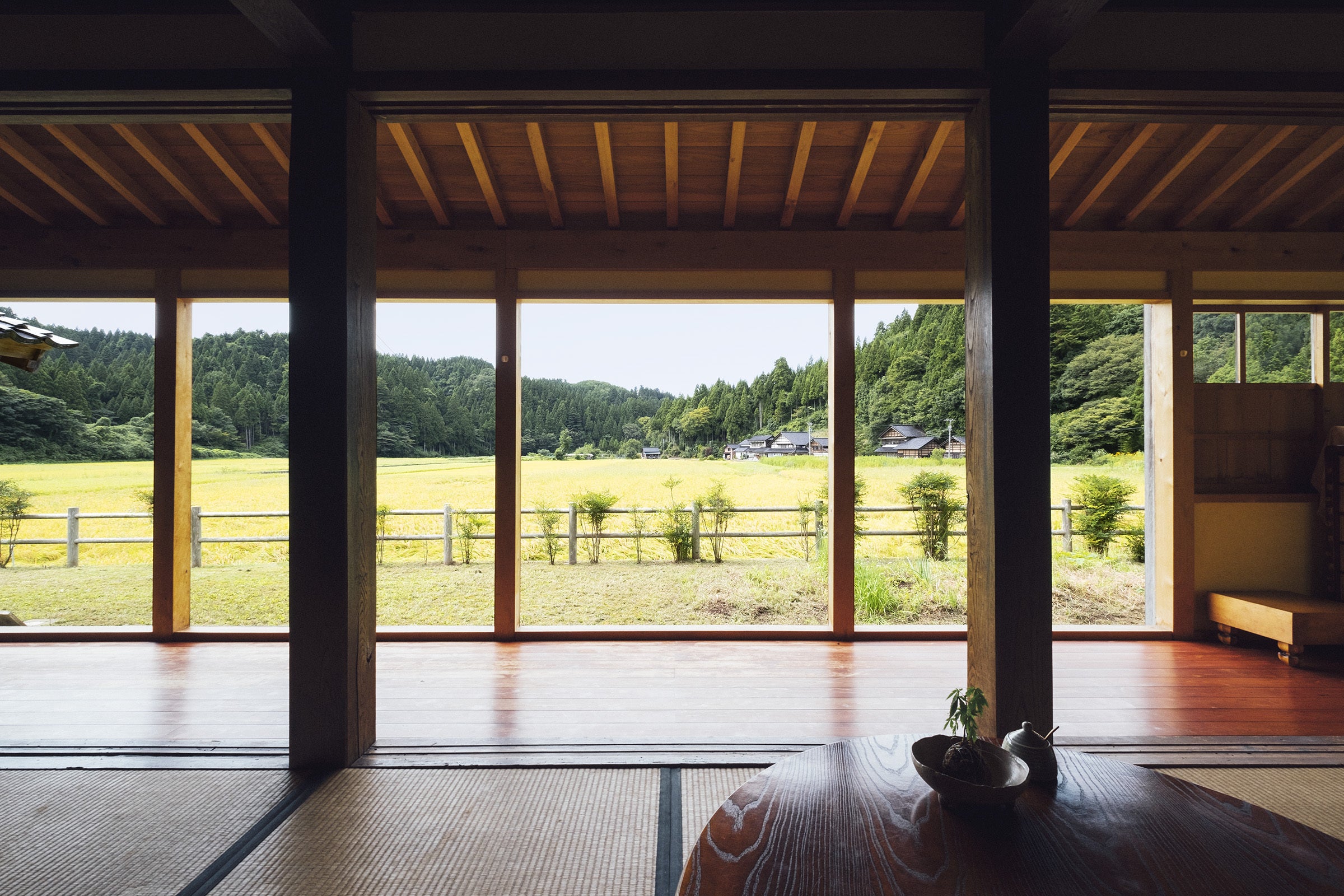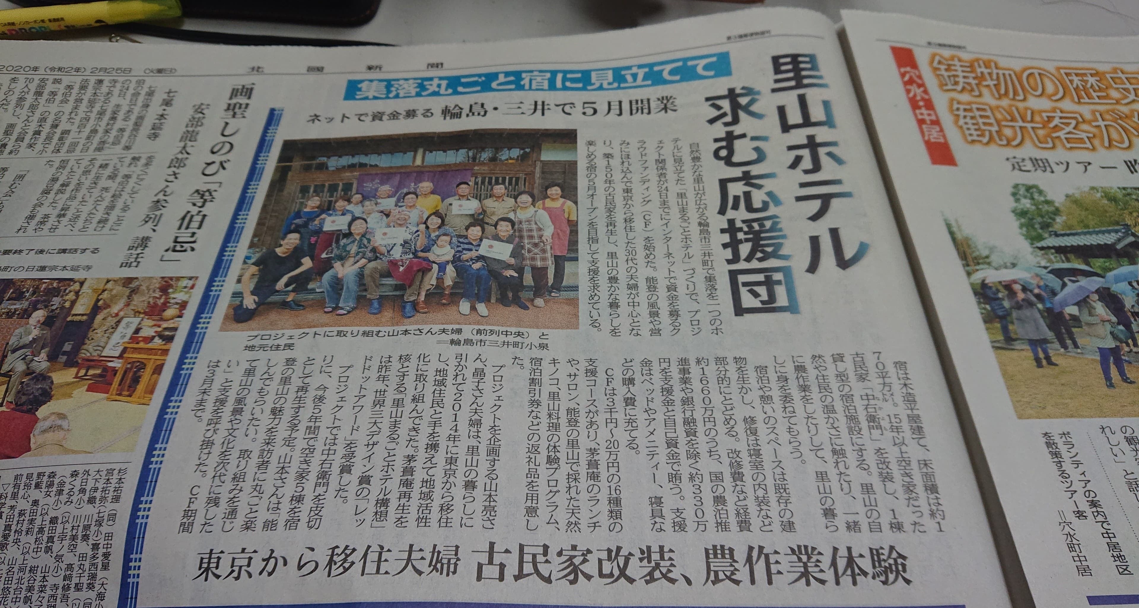 今日は里山まるごとホテルの一棟貸し型宿泊施設「中右衛門(なかよも)」に使う木材を探してきました。里山まるごとホテルのある輪島市三井町(みいまち)は、林業を主産業に発展してきました。今回のリノベーションでは、中右衛門にある材料を活かしていくことをベースにし、新たに加えたりするものについてはできるだけ、天然素材を使うこと、地元素材を使うことを念頭に置いています。今日はダイニングテーブル、そして洗面所や脱衣所につかうシンクのカウンター用の天板を探し、ダイニングテーブルには地元産のスギ、そしてカウンターには水に強い能登ヒバを使うことを決めました。(設計士の奥能登アーキの越田さんと。どんなダイニングテーブルに生まれ変わるか楽しみ)