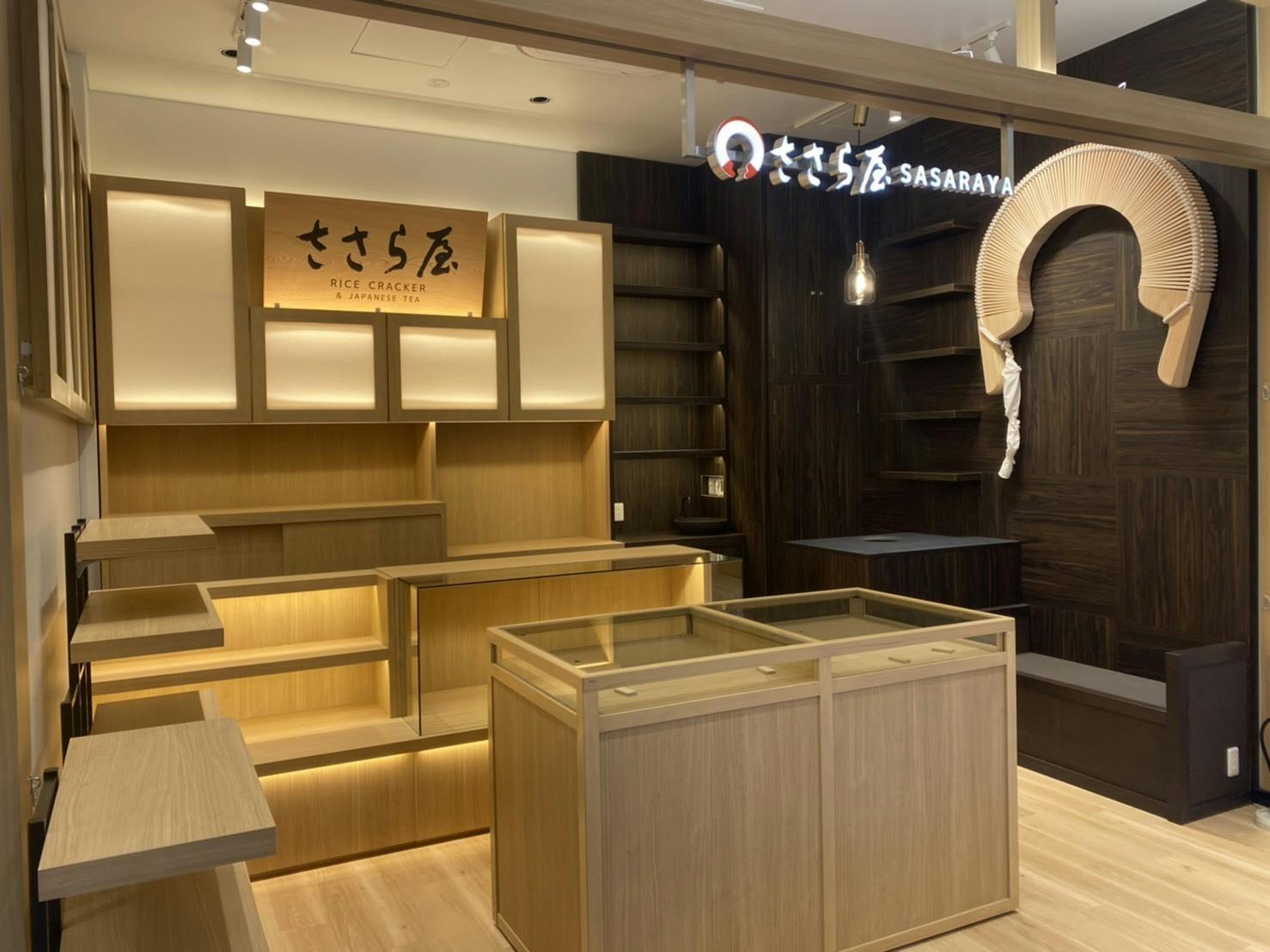 羽田エアポートガーデンの店舗に什器が搬入され、ビッグささらの設置も完了しました。