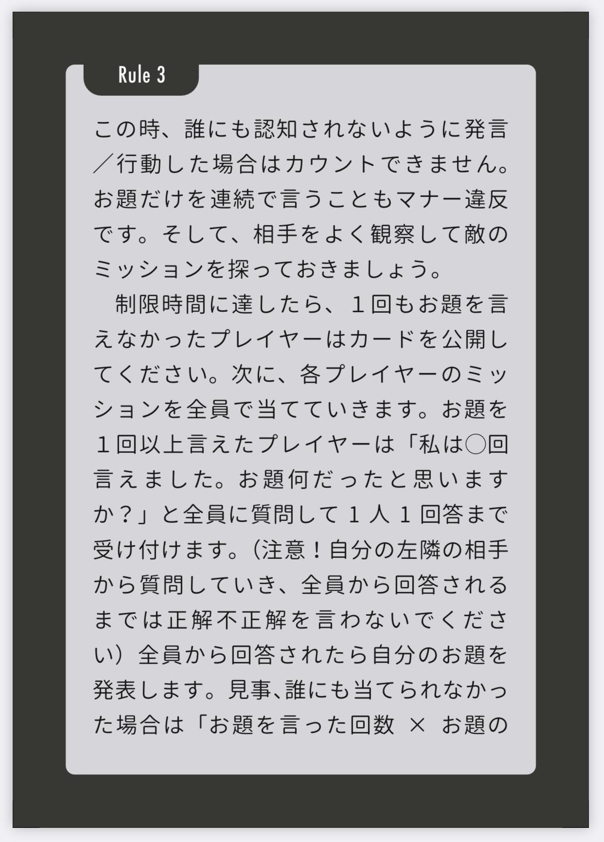 長らく売り切れてしまっておりましたシークレットミッションですが 販売再開しました! ・電話を利用すれば自粛中でも安全にプレイ可能なゲームです!詳しいルールはマーマン様の動画を参考にしてくださいませ!