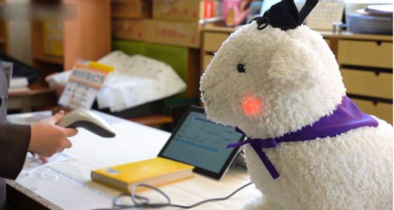 本を貸出、返却する際、雪丸が頬を光らせ尻尾を振りながら「借りられました」「返せました」「いっぱい本を読んでくれてありがとう」などと喋ります。尻尾の動きも独自開発、できるだけ自然な動きで雪丸の魅力が伝わるようにこだわりました。