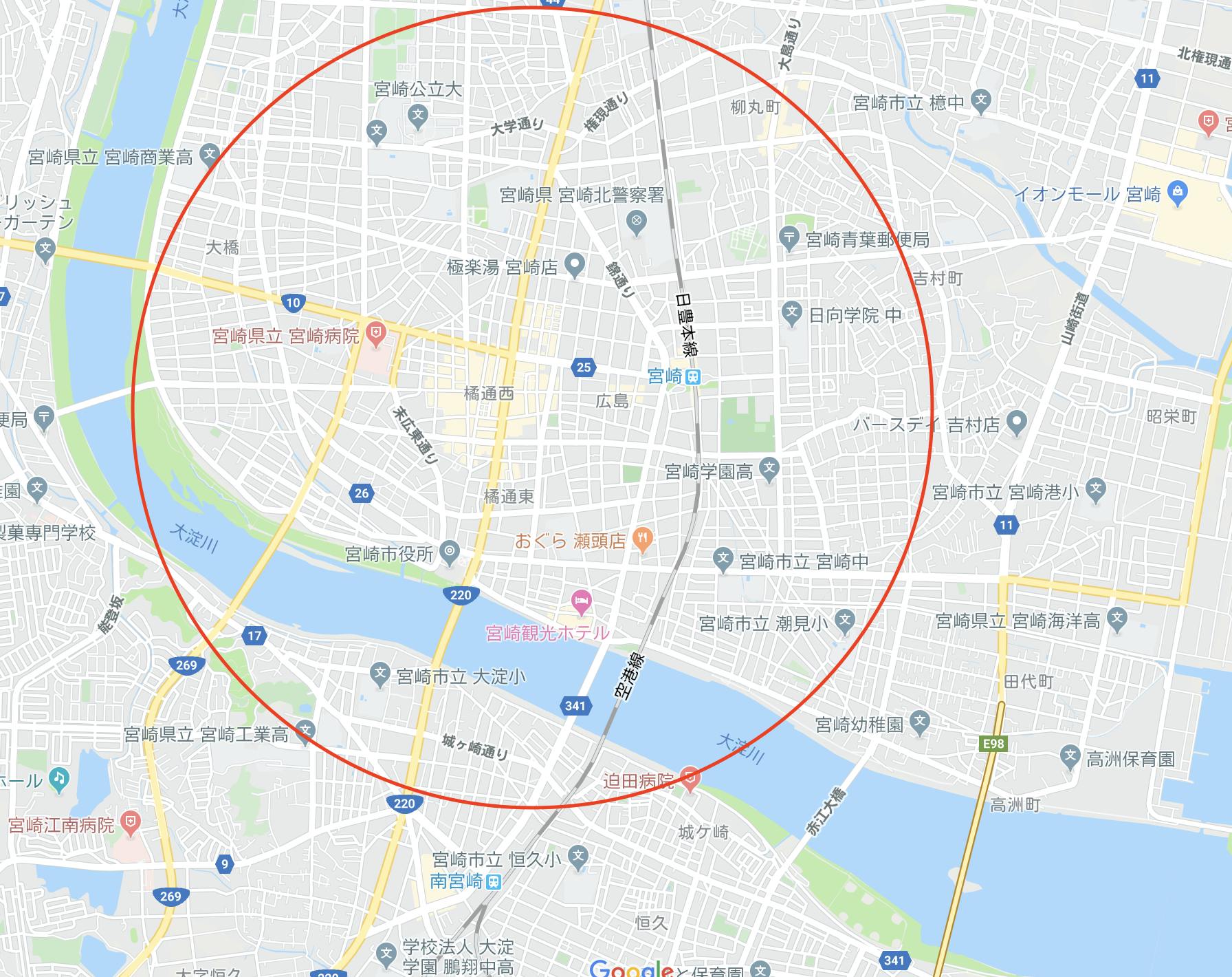宮崎県宮崎市の中心市街地から3km圏内に店舗を取得予定です。