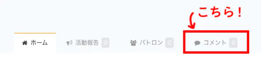 ①「コメント」タブを選択