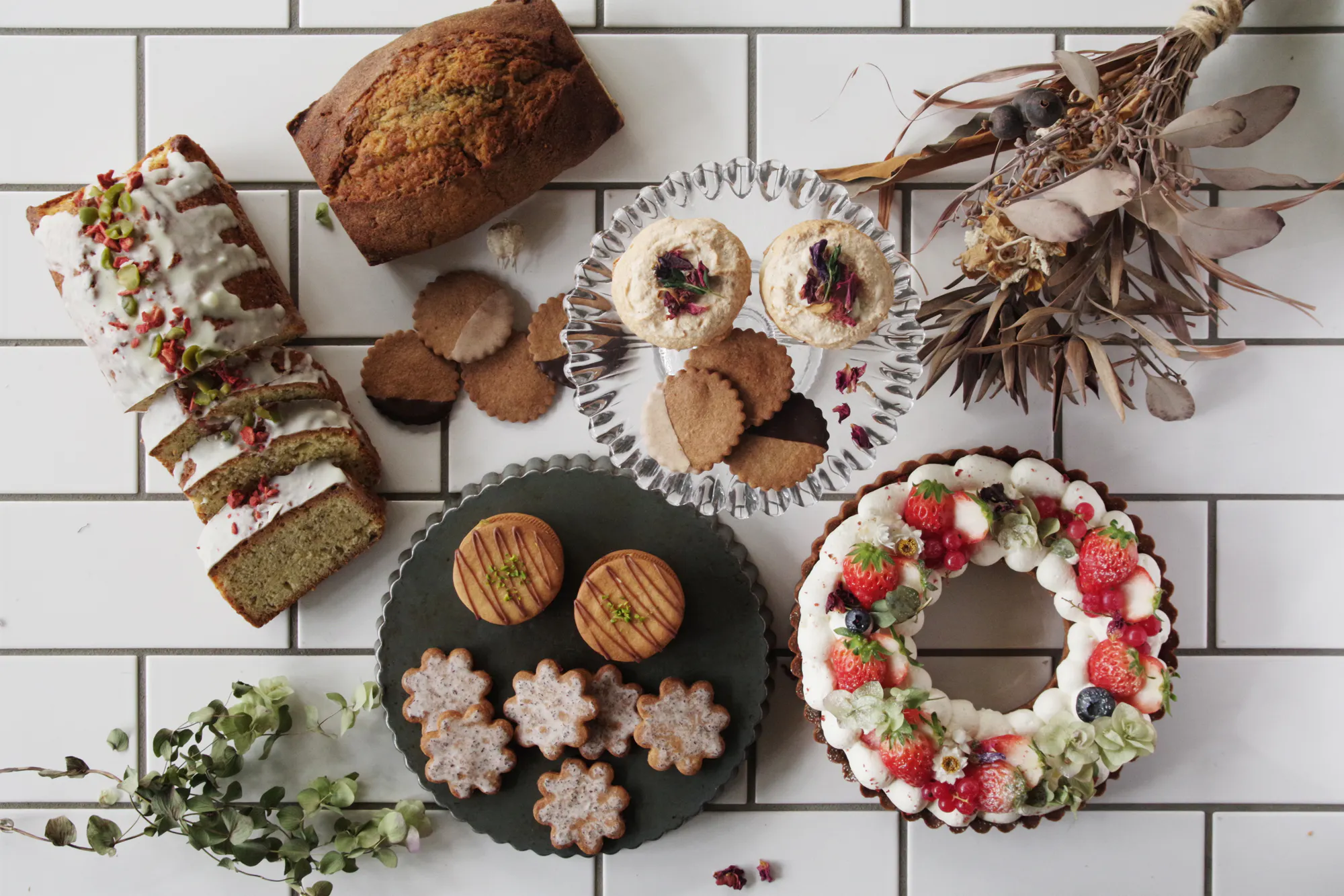 スパイスの効いたクッキーや紅茶の香り・味わいがたまらないパウンドケーキ、色鮮やかなリースタルトまで。