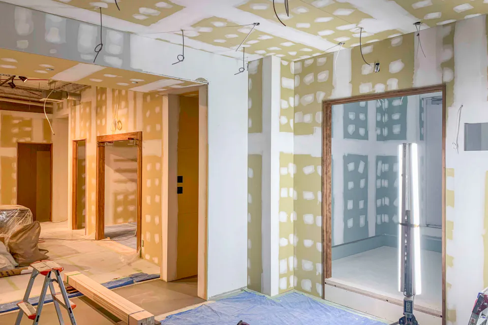 ボードの継ぎ目を埋めるパテ処理をして、塗装面がすべすべになるように整えていきます。