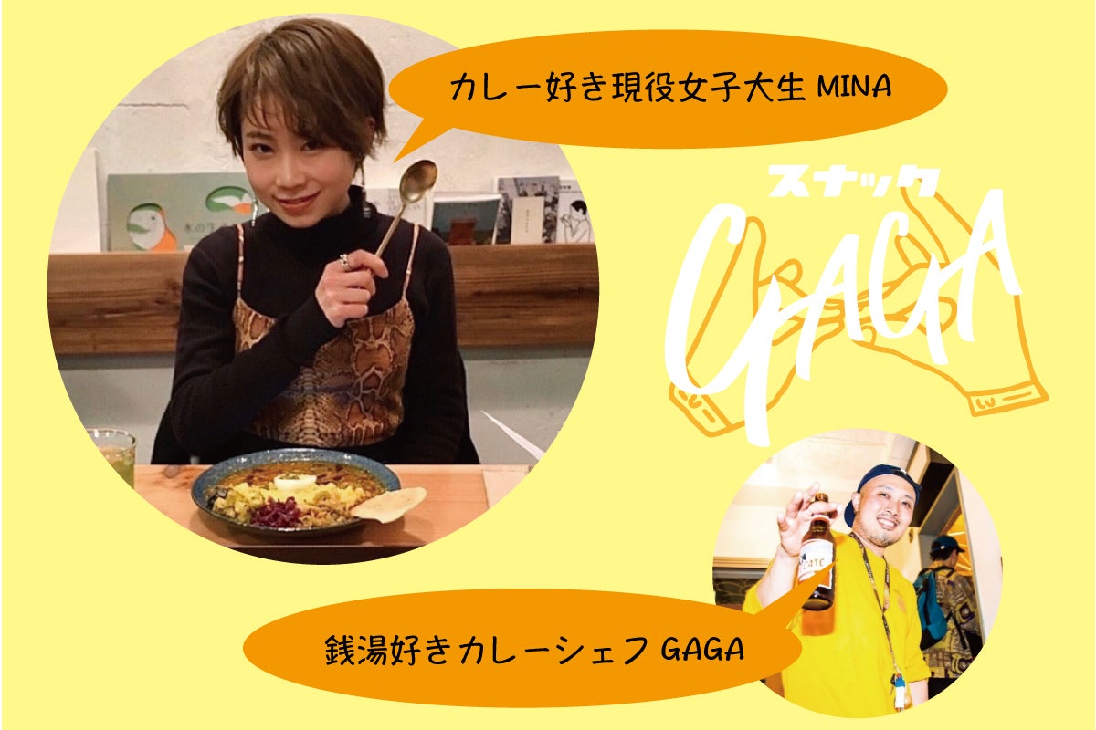 「GAGA」は直訳すると、「(…に)夢中になって」という意味。2018年に映画で公開された「ボヘミアンラプソディ」というクイーンの伝記映画のワンシーンで「LIVE AID」で歌う「RADIO GA GA」。あの高揚する全世界であのように夢中に、気持ちが一つになってほしい。お店や出店先でカレーを中心にそのようになってほしい。前身である「CurryGAGA」から引き継ぎ、スナックという次のステップでも、そんな想いを込めて名前をつけました。