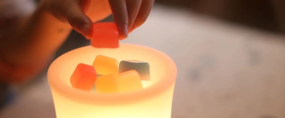 加えてキューブキャンドルがほかの場所では溶けることなく、キャンドルウォーマーでのみ溶けるよう、適切な硬さを保つ働きもあります。