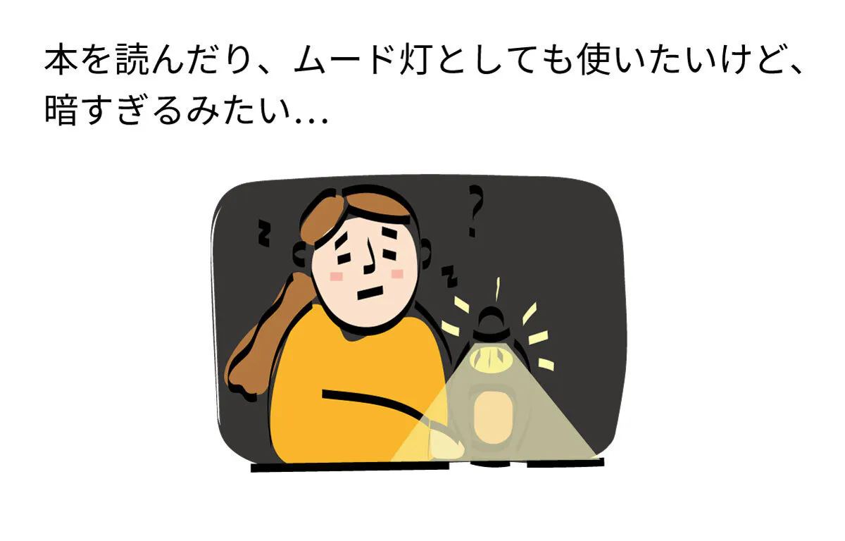 · 機能:穏やかな光だけでなく読書もできるような明るく、おしゃれなムード灯があったらいいな。