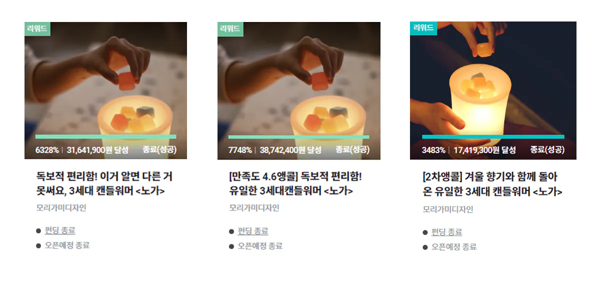 キューブキャンドルウォーマーノガは、韓国最大のクラウドファンディングサイトWadizで3度のファンディング成功と一般販売を通して、総額3千万円を超える販売額を達成しました。 多くの方々に直接使っていただくことで、フィードバックをいただくことができ品質はさらに良くなっています。