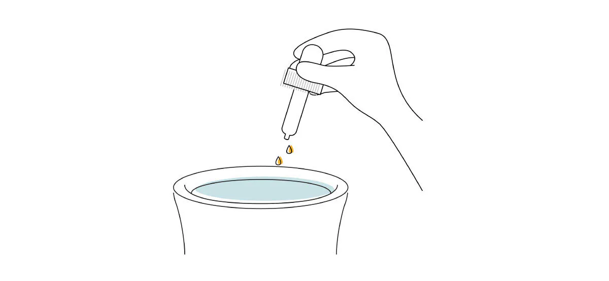 シリコン器の半分の量の水を入れて、アロマオイルを3~4適垂らしてください。
