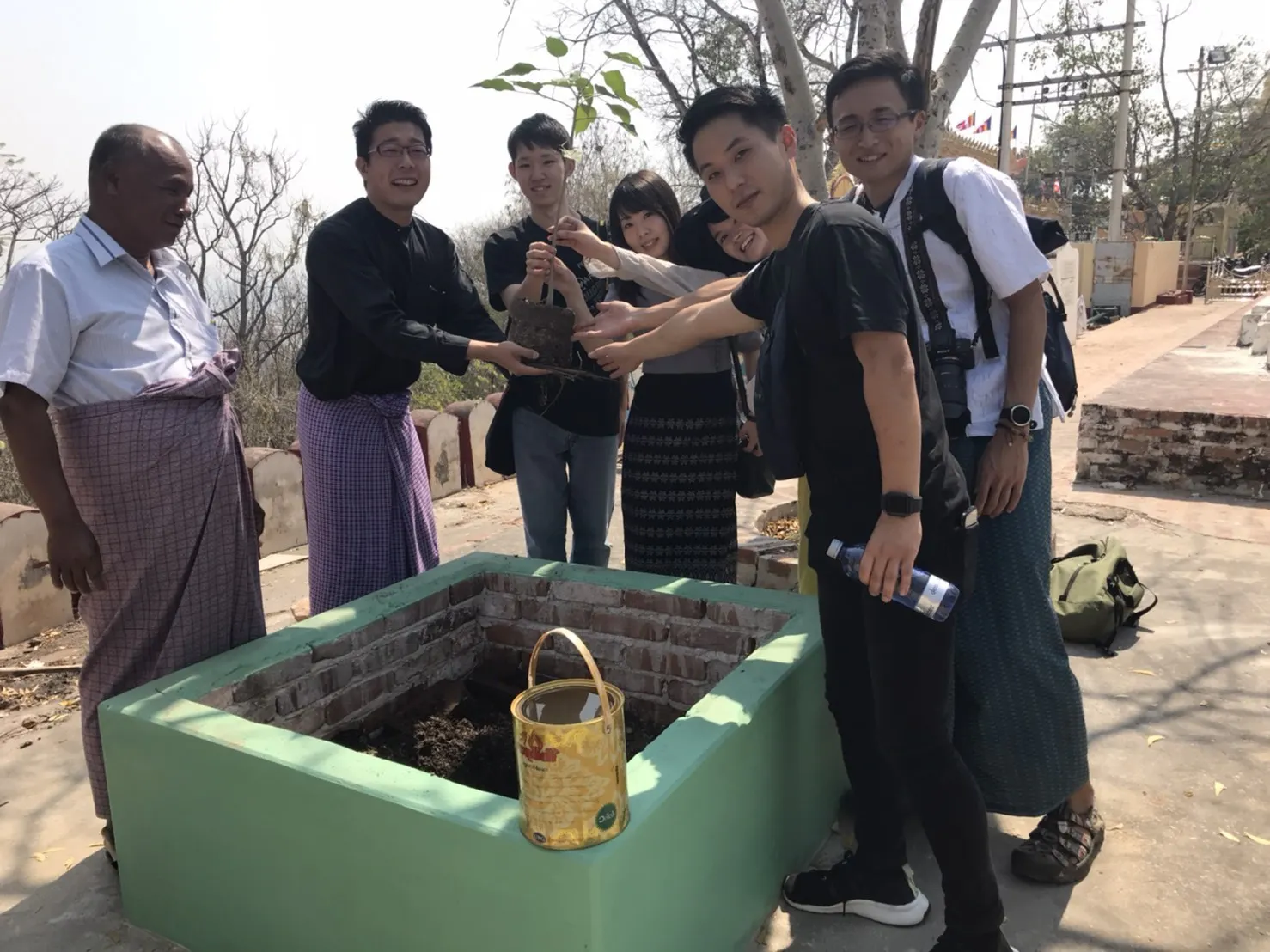 2020/03/15 01:453月1日ザガイン山に菩提樹(ミャンマー語では「マハーボーディーピン」と呼ばれています)を植えに行きました。こうした寄付を行ったときは菩提樹の木を植えることが習わしのようです。そのことを教えていただき、植えさせていただきました。このような形で植えさせていただきました。その意味としては、元々菩提樹の木(沙羅双樹)はお釈迦様が悟りを開いた場所にあった木であり、仏教とはものすごく縁が深いようです。さらに死者の魂を菩提樹の木は吸い上げるという考え方があるようです。亡くなった方々をミャンマーの習慣の中で弔うことができることが、架け橋になるための一歩であるように思います。この木が育つ頃にはどんな社会になっているのでしょうか。3月7日今回はお礼状書きやリターンの準備のため、お寺の方に伺いにミャンマー人の方々と伺いました。今日はラビニという満月の日でいつもより参拝者が多くいらっしゃいました。普段よりお供え物が圧倒的に多い!そんな中、僕がボランティアで僧院にて日本語教室を開いてた生徒さんが一緒に行ってくださいました。僕が1名ずつ家に帰って記入すると言っていたのですが、手伝ってくださり、全87名分を2時間ほどで終えることができました。個人的にはミャンマーの方に手伝っていただくのは申し訳ないのですが、彼らの誠意にお断りするのを辞めました。こうした善意に甘えさせていただくことで、少し僕も余裕をもって取り組むことができております。色々な考え方はございますが、この修復事業はミャンマーと日本の架け橋の一つの形になれればと願っております。 もっと見る