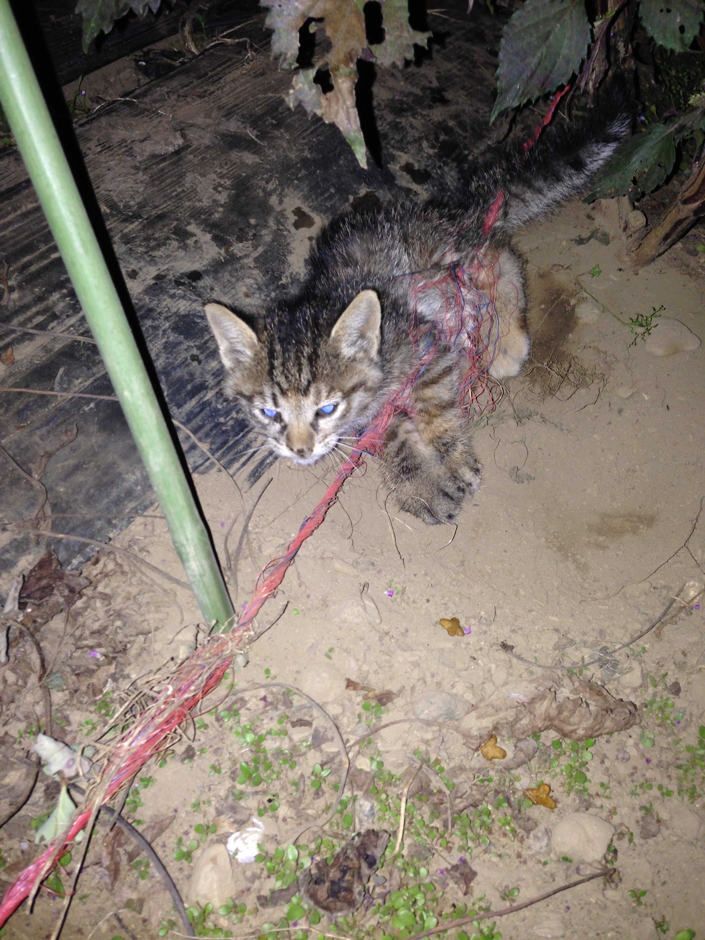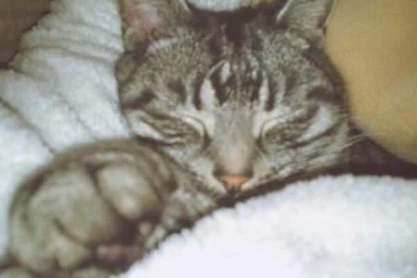 トトは、近所の空き地にて体中にネットが絡まっていたところを私が保護した猫で、我が家に来た当初は後ろ足が1本壊死し、ひどく怯え、衰弱していました。